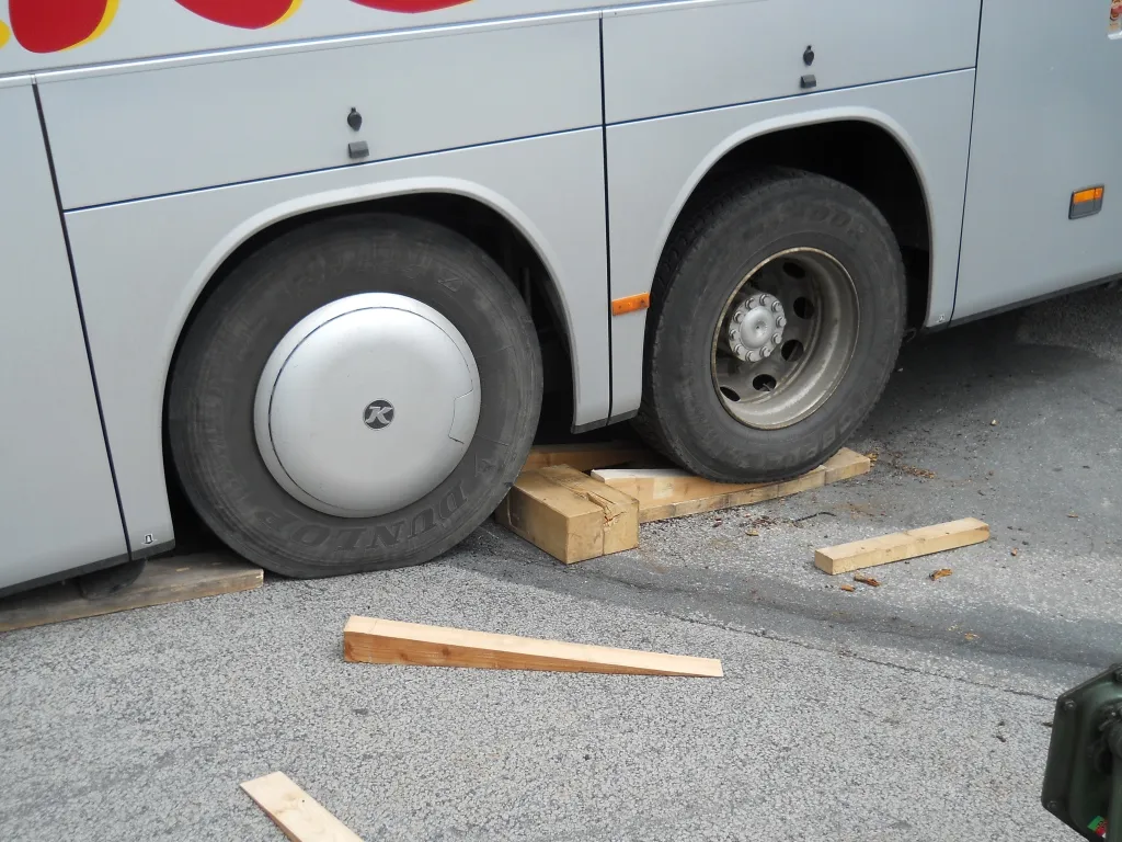 Im Kreuzungsbereich Waidhofener Str. und Margitweg setzte im Zuge eines Abbiegemanövers ein Reisebus auf und verkeilte sich regelrecht in den Asphalt. Die FF Heidenreichstein konnte den Bus mittels Südbahnwinde und Holzpflöcken soweit anheben, um ihn wieder frei zu bekommen und der Lenker konnte danach seine Fahrt fortsetzen.