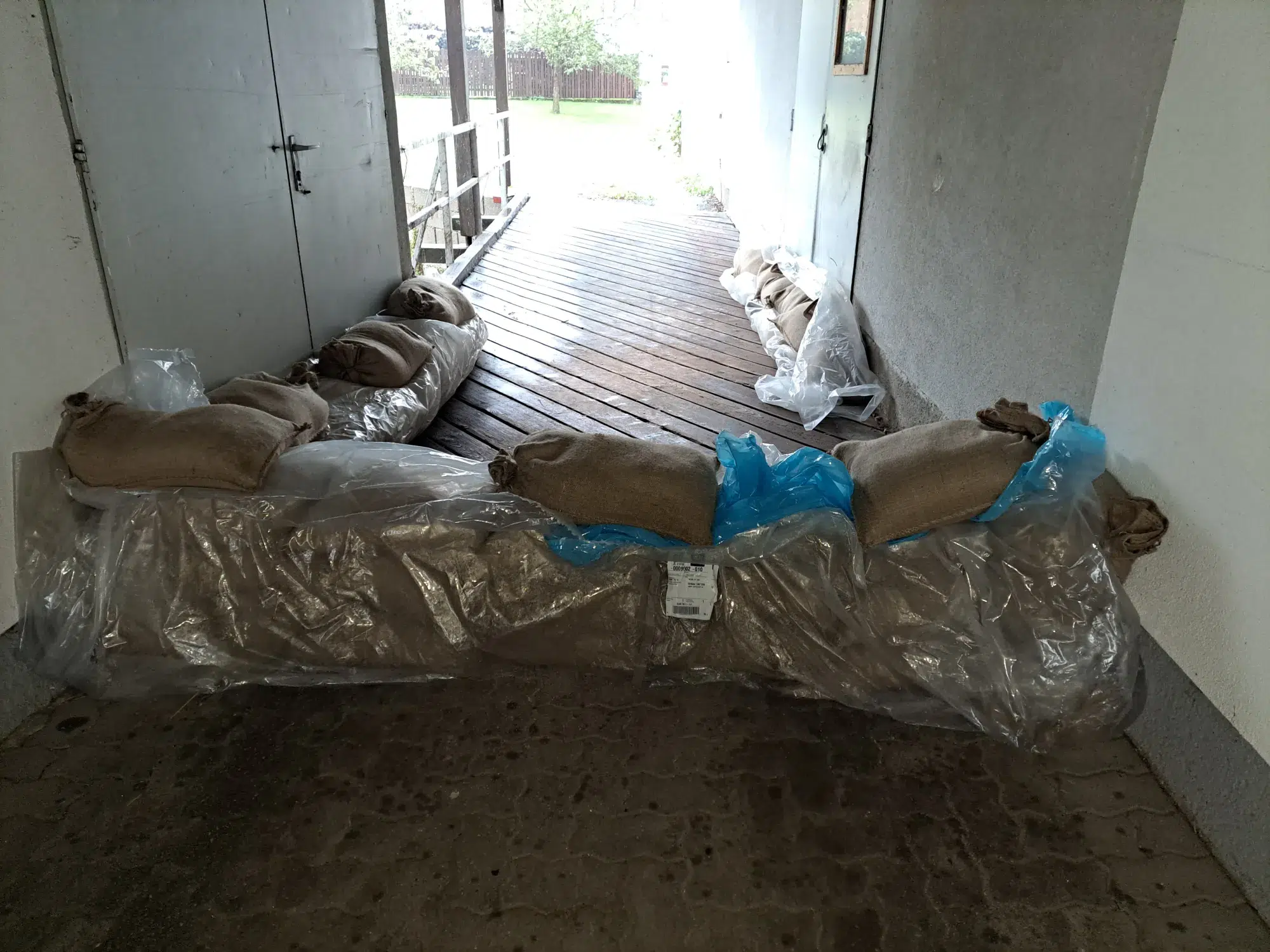 Schutzbauten mit Sandsäcken