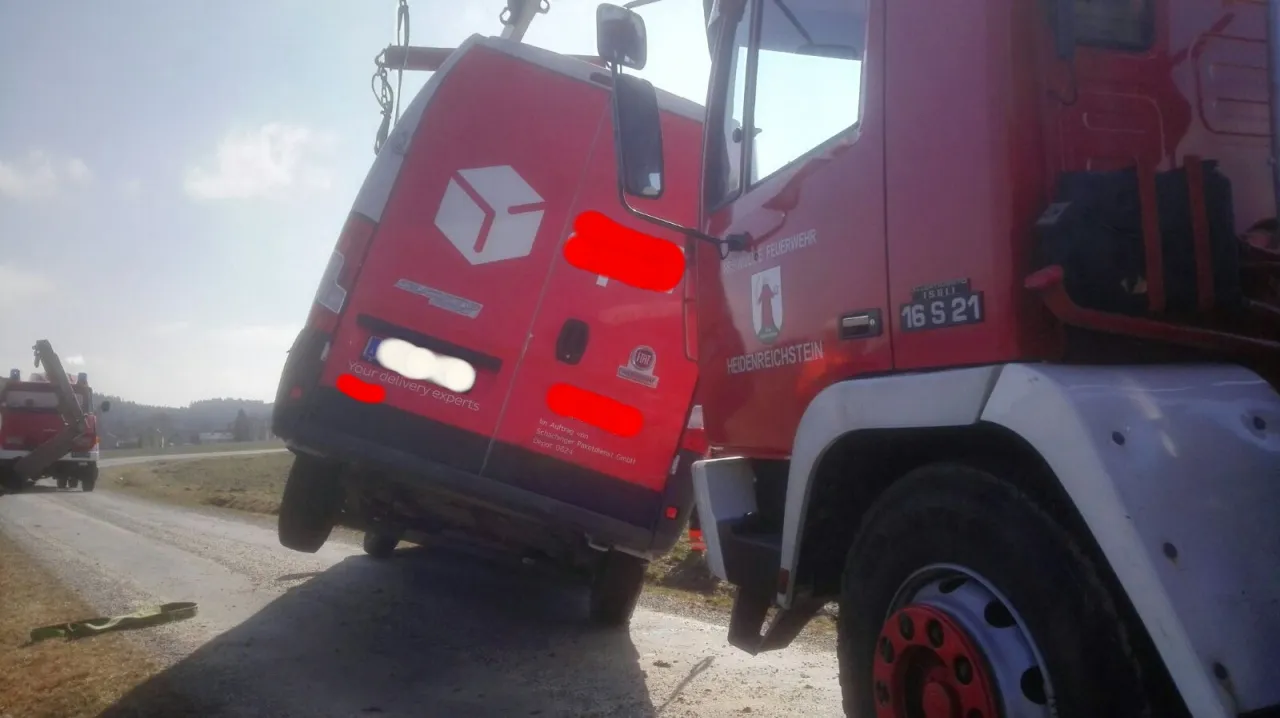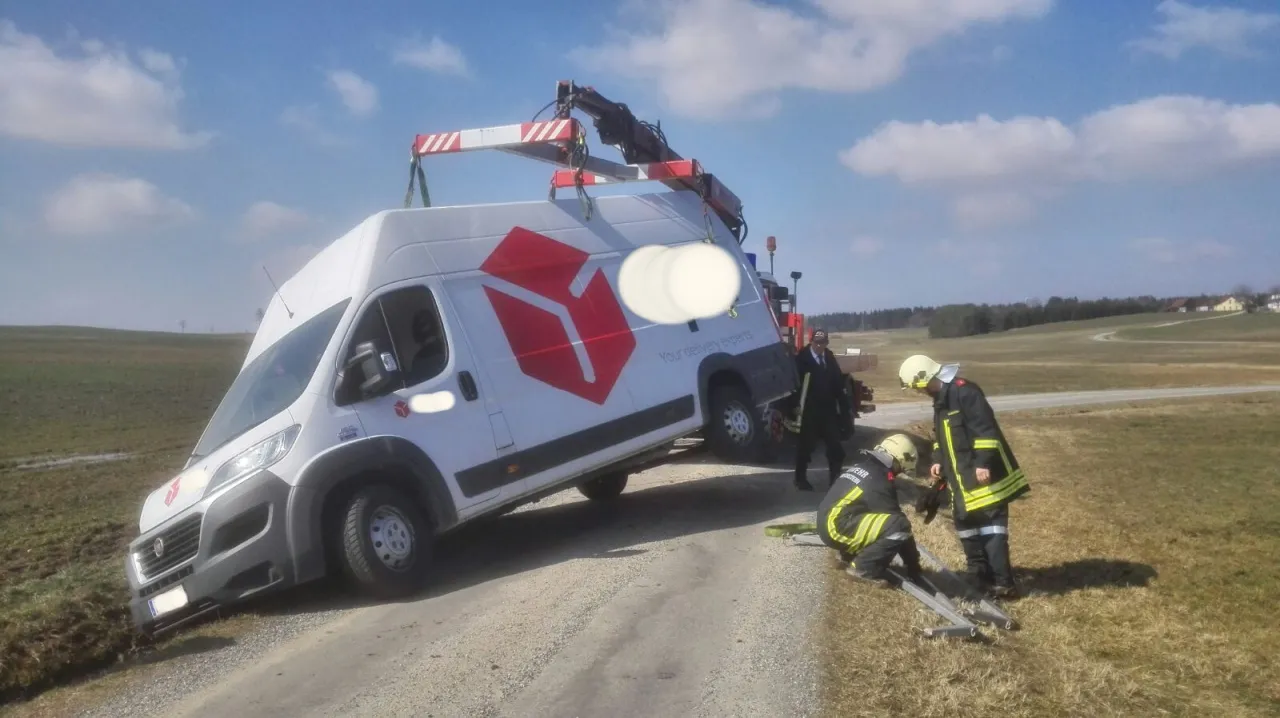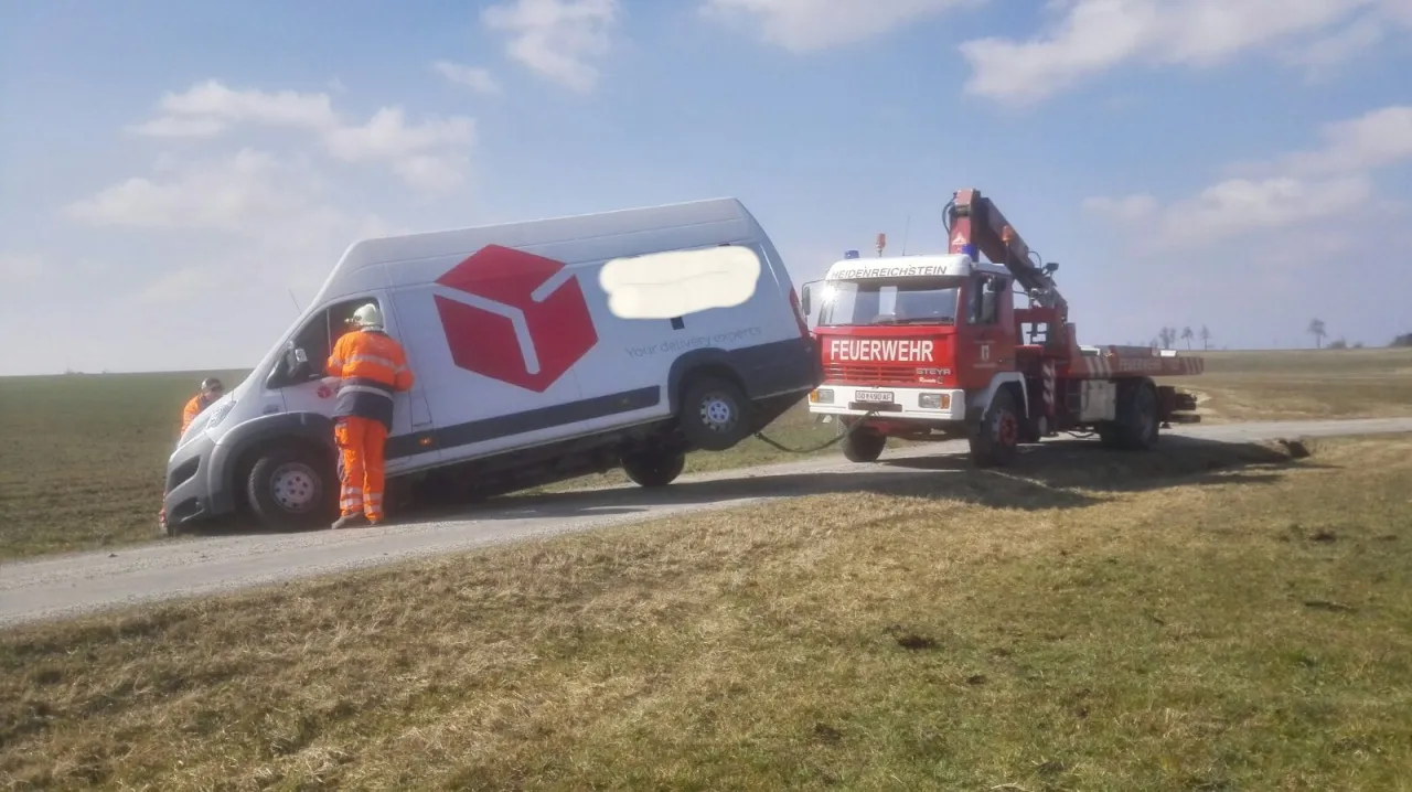 Dem Lenker eines Lieferwagens wurde der Edlauweg etwas zu schmal. In Folge musste er von der FF Heidenreichstein aus dem Straßengraben geborgen werden.
