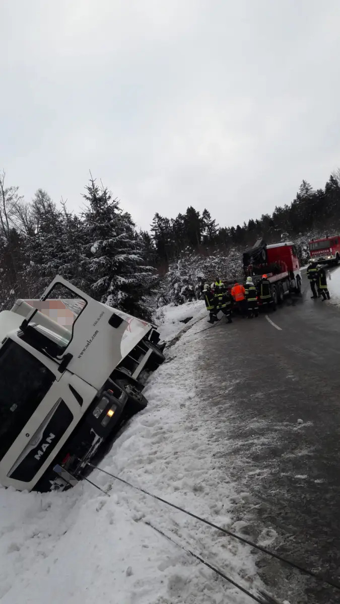 Unterstützung der FF Eggern bei einer LKW-Bergung.