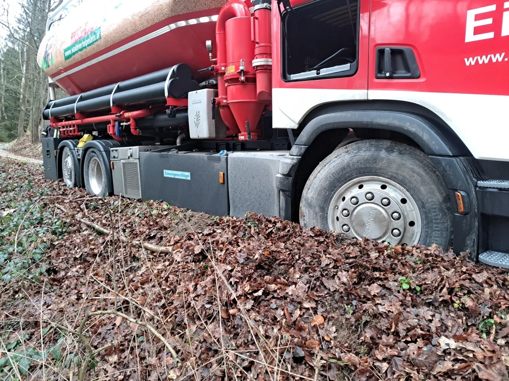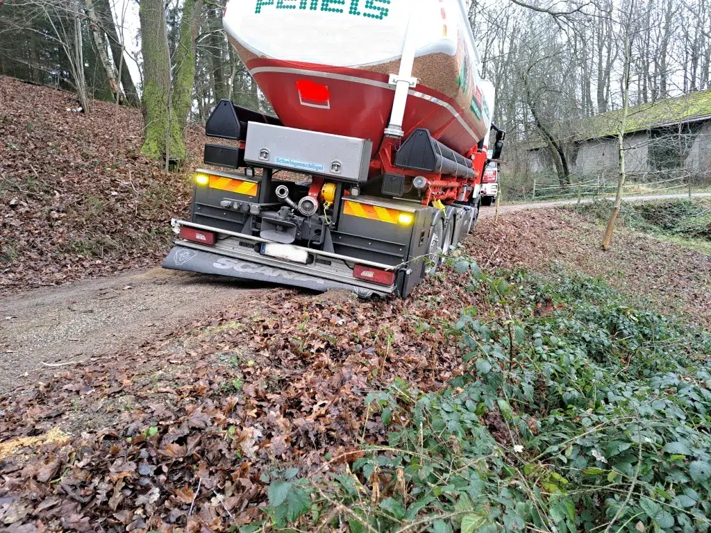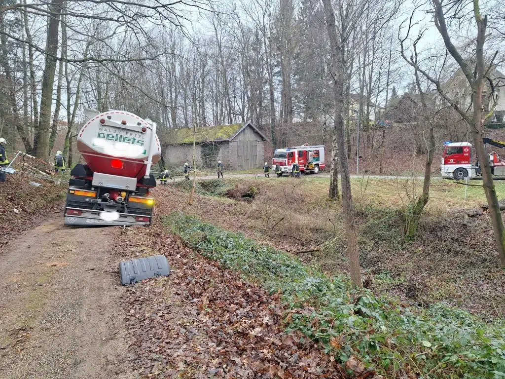 Beim Versuch Pellets zu liefern, kam ein LKW vom Weg ab und drohte abzustürzen.