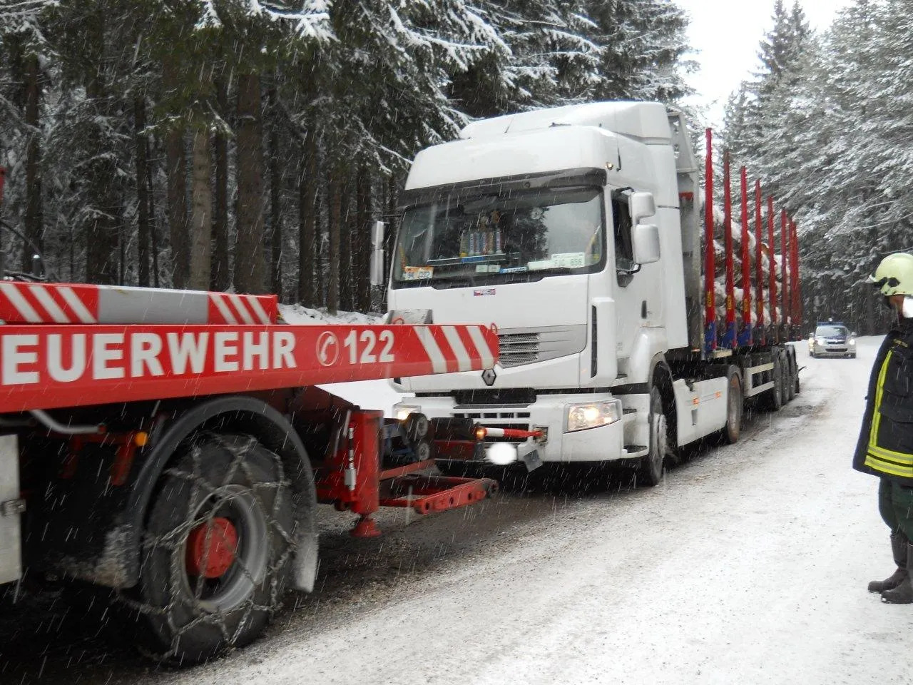 Auf der L61 zwischen Heidenreichstein und Seyfrieds kam ein Holztransporter zum Stillstand. In Folge der glatten Straßenverhältnisse und auch wegen nicht angelegter Schneeketten, konnte der Lenker seine Fahrt nicht weiter fortsetzen.