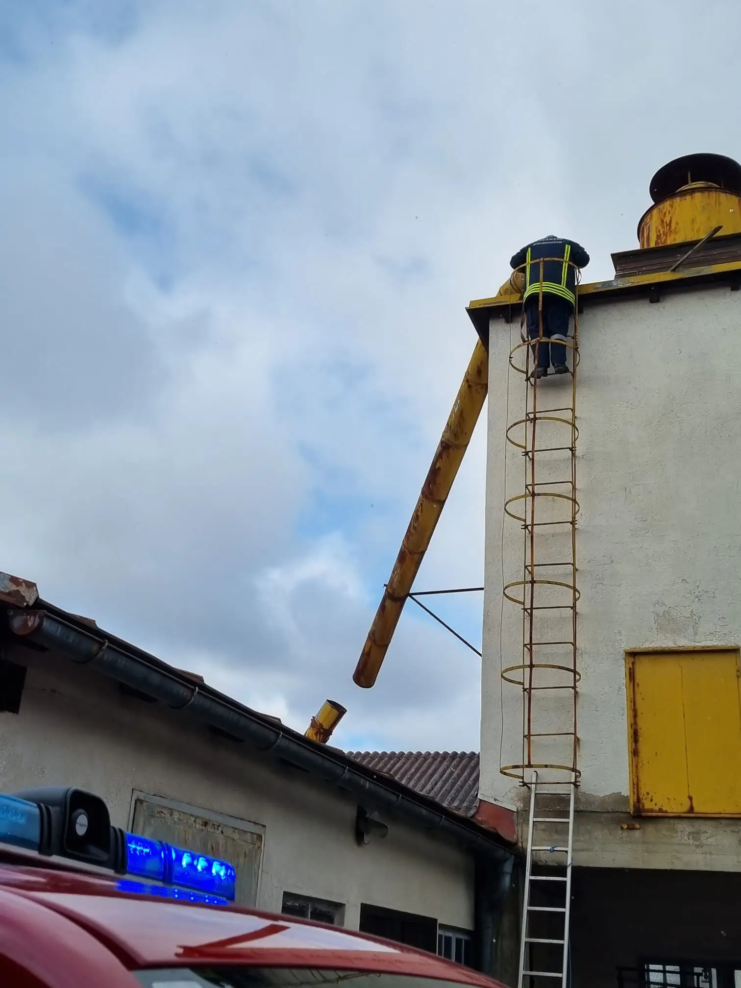 Der 2. Sturmeinsatz des Tages führte uns in die Postgasse. Dort wurde auf einem Silo ein Rohr beschädigt, dass gesichert werden musste.