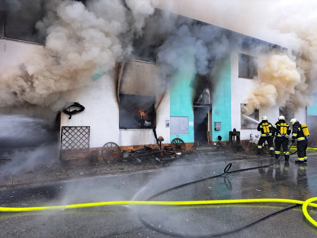 Wir wurden zu einem Brand der Stufe 3 alarmiert. Das Alarmbild lautete Wohnhausbrand, vermutlich Person im Inneren. Bei unserem Eintreffen wurden wir jedoch informiert, dass sich niemand mehr im Haus