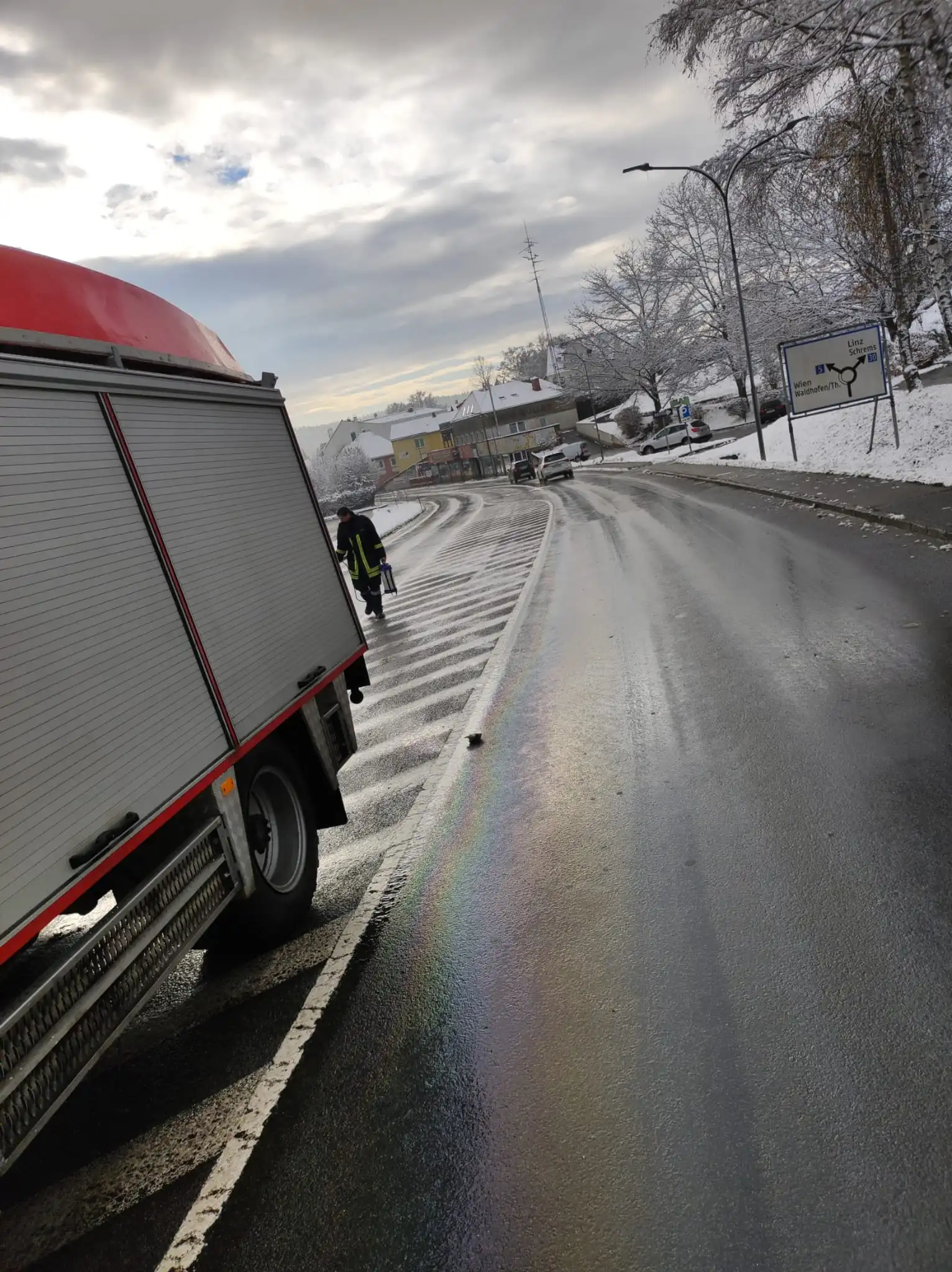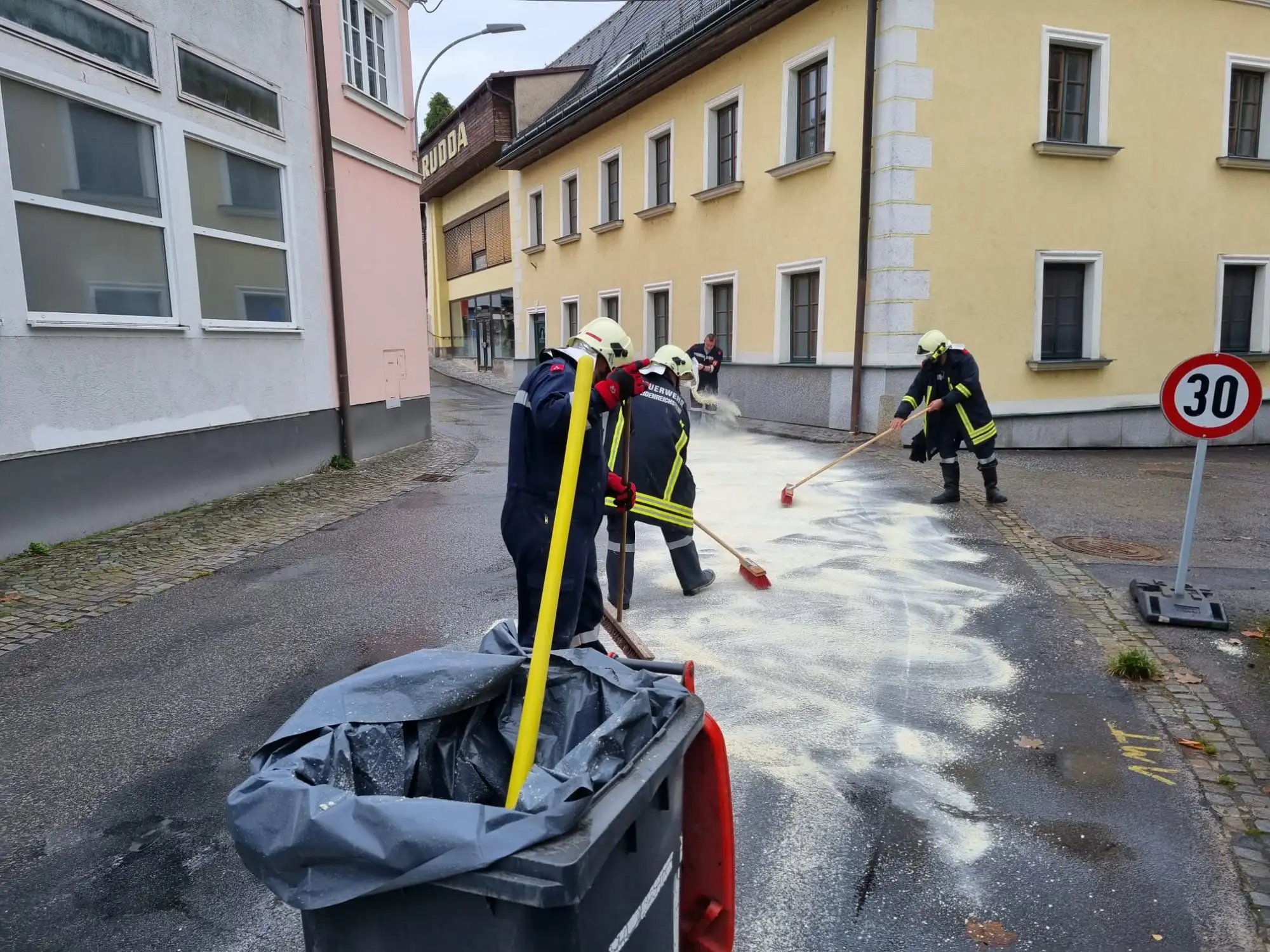 Bei einem LKW riss eine Hydraulikleitung und er verlor dadurch unbemerkt Öl. Die FF Heidenreichstein musste deshalb eine Ölspur von der Käsemacherwelt bis zum Naturpark ( B5) und von der