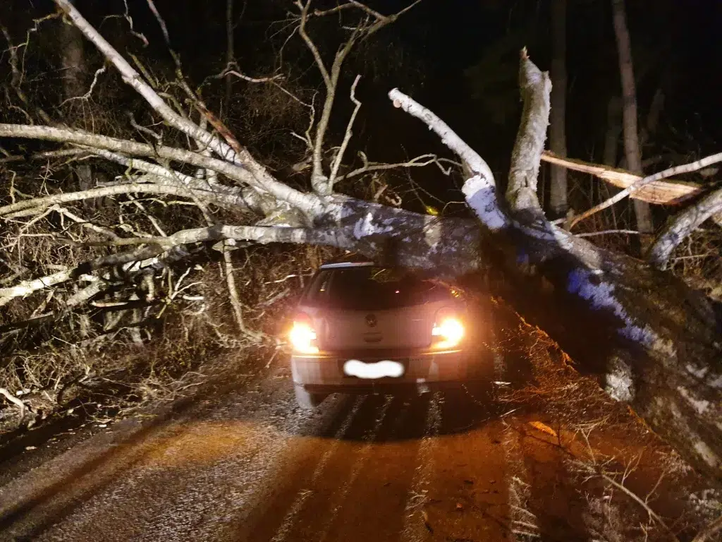 Wir wurden zu einem Einsatz zwischen Haslau und Gutenbrunn alarmiert. Das Einsatzbild lautete „Baum über Straße“. Beim Eintreffen am Einsatzort stellte sich jedoch heraus, dass der Baum nicht nur über