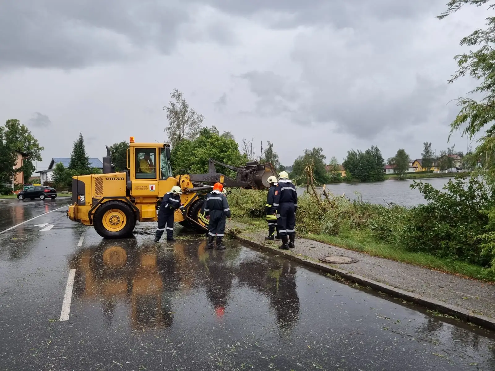 Zuerst wurden wir zu einem Einsatz in der Kautzenerstr. und beim Kindergarten alarmiert. Dort war bereits ein Baum umgestürzt bzw. drohte zu stürzen. Es kamen jedoch laufend neue Einsatzmeldungen herein,