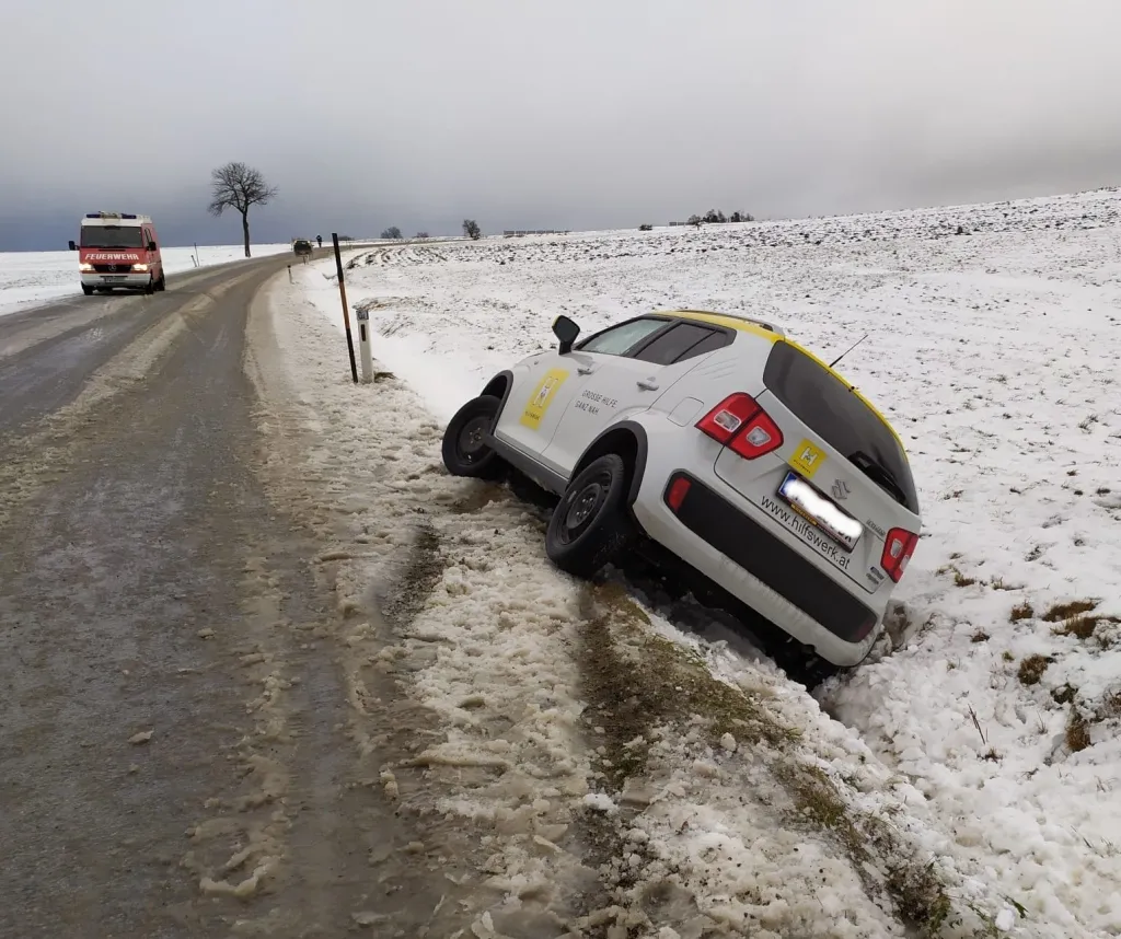 Auf Grund der Straßenverhältnisse rutschte ein Klein-LKW in den Graben.Mittels Seilwinde wurde er wieder herausgezogen und konnte seine Fahrt fortsetzen.