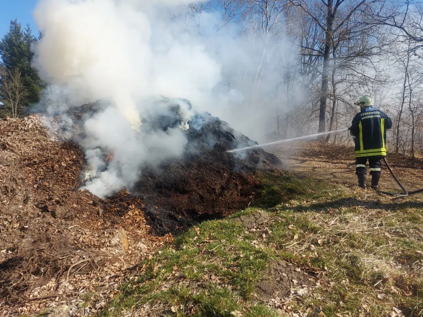 Vom Grundbesitzer selbst wurde der Brand einer Wiese und eines Laubhaufens gemeldet. Bei unserem Eintreffen bekämpften wir vorerst die Rauchentwicklung. Danach wurde von der Fa. Talkner ein JCB angefordert um