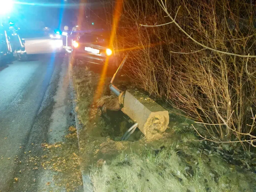 Einem PKW-Lenker lief ein Tier über die Fahrbahn. Deshalb verriss er sein Fahrzeug und kollidierte mit einer Straßenlaterne. Anschließend blieb er auf der angrenzenden Böschung im Gebüsch stehen. Das Auto