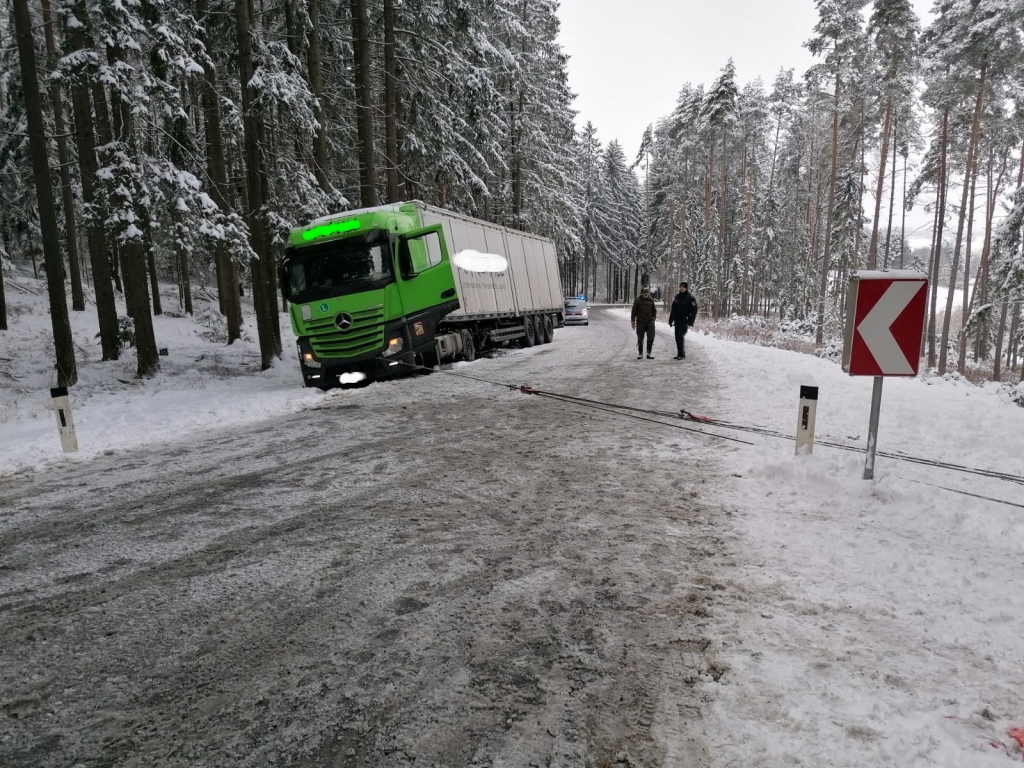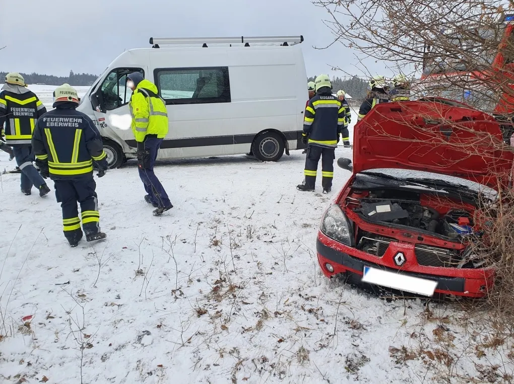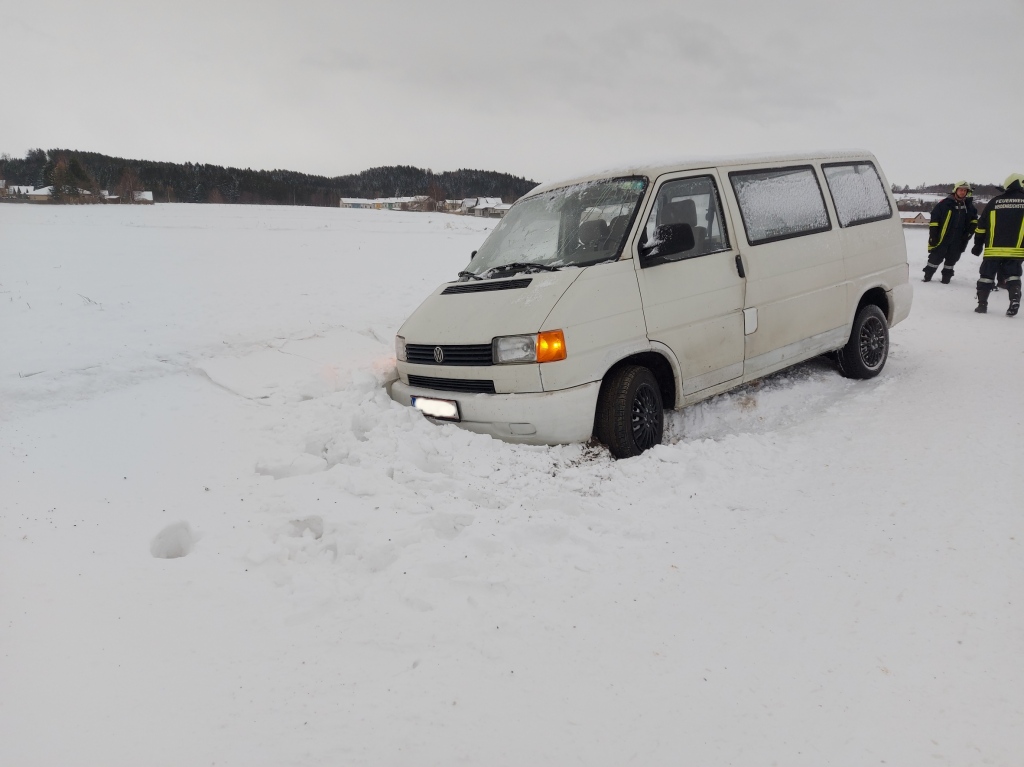 Ein Kastenwagen kam auf der schneeglatten Fahrbahn zwischen Heidenreichstein und Dietweis ins Rutschen und landete im Straßengraben. Mit einer Seilwinde konnte das Fahrzeug problemlos aus dem Graben gezogen werden und