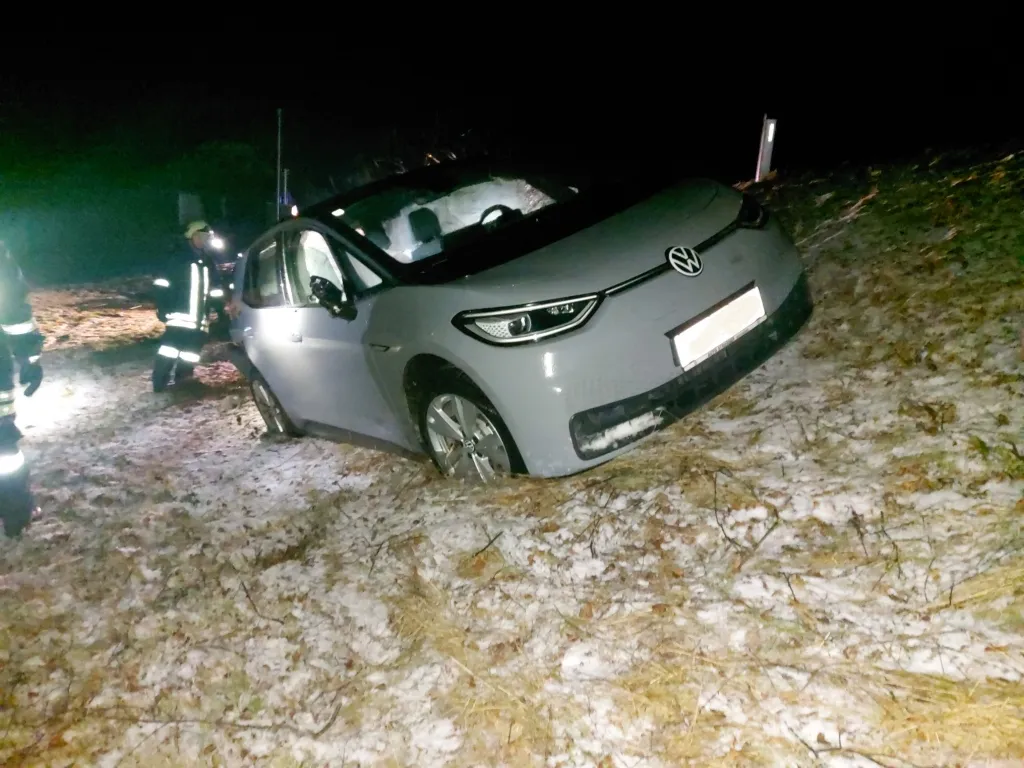 Eine Premiere für die FF Heidenreichstein. Wir mussten am Tag vor dem Heiligen Abend unser 1. E-Auto bergen.Ein PKW-Lenker verlor auf der glatten Fahrbahn zwischen Heidenreichstein und Wielandsberg die Kontrolle