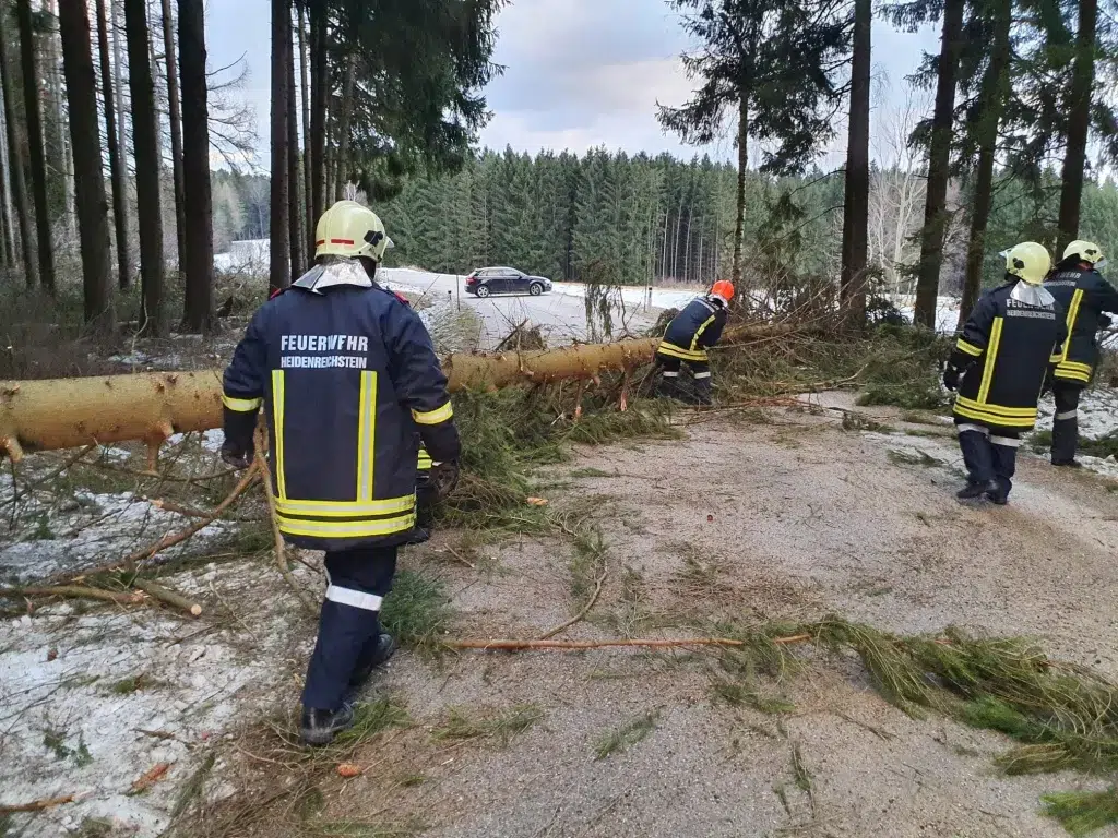 Kurz nach Mittag wurden wir zum 1. Einsatz auf der Seyfriedserstraße alarmiert. Dort wurde durch umgestürzte Bäume die Straße blockiert.Kurz danach mussten wir die Blockade der LB 30 auf Höhe