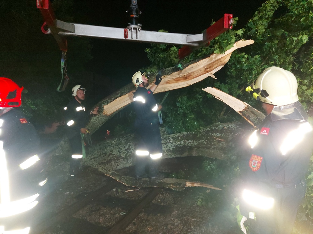 Kurz vor Mitternacht wurden wir zum 1. Einsatz in Wielandsberg alarmiert. Dort wurden durch einen umgestürzten Baum 2 Oldtimer beschädigt und die Straße blockiert.Das war aber nur der Beginn einer