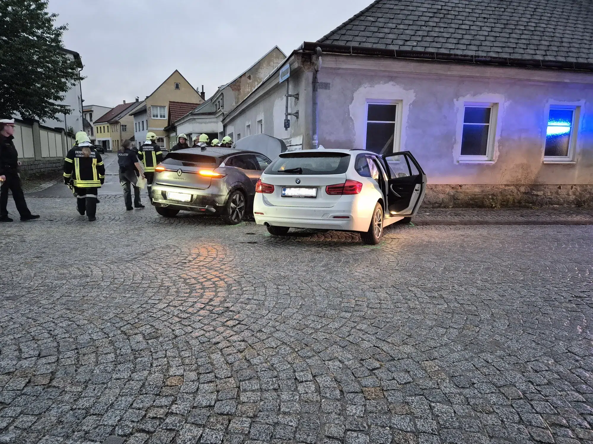 Nach einem Zusammenstoß von 2 Fahrzeugen im Kreuzungsbereich Litschauerstr.-Hinterzeile mussten die beiden schwerbeschädigten Autos von uns geborgen und sicher abgestellt werden. Außerdem waren auch der Rettungsdienst und die Polizei vor