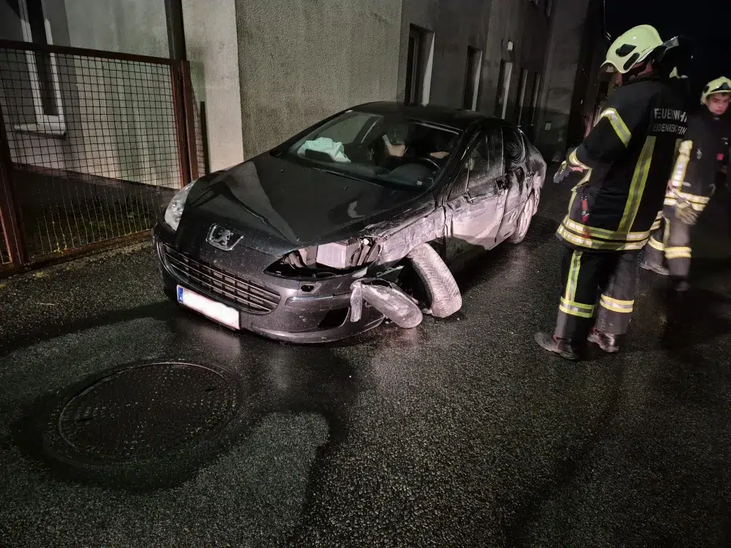 Aus unbekannter Ursache touchierte und beschädigte ein Lenker mit seinem PKW die Fassade eines Hauses und fuhr trotz kaputter Radaufhängung noch ca. 200 Meter weiter. Erst dort kam das Fahrzeug
