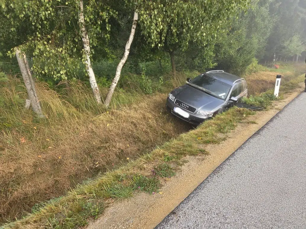 Am Parkplatz der Fa. Hofer überfuhr ein PKW die Abgrenzung und landete im Entwässerungsgraben. Mittels Kran wurde das, ansonst unbeschädigte, Auto wieder auf die Parkfläche gehoben.