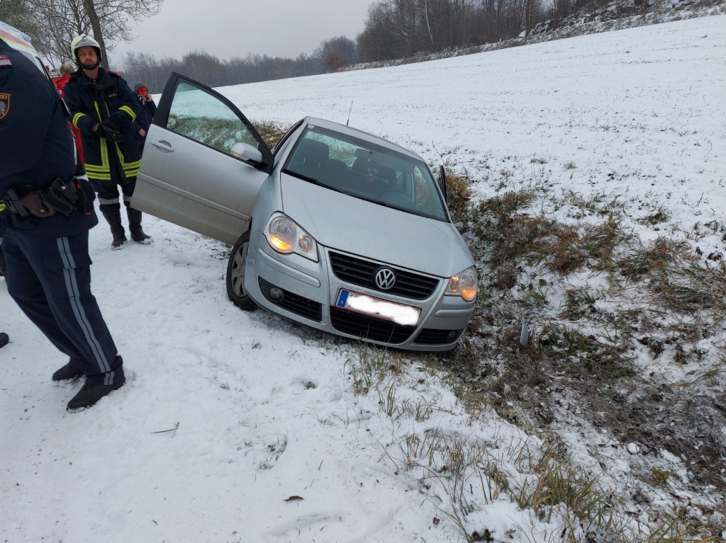 Ein PKW-Lenker verlor die Herrschaft über sein Fahrzeug und landete in einer angrenzenden Wiese. Da keine Gefahr in Verzug war wurde das Fahrzeug nur gesichert und am nächsten Tag privat