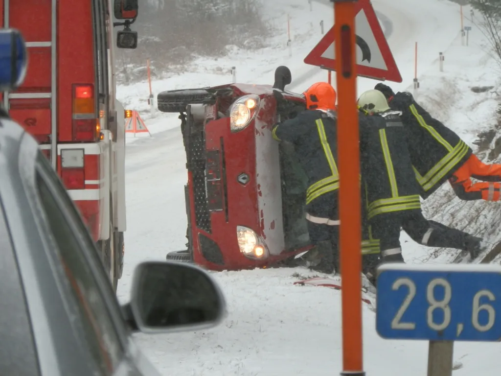 Zwischen Heidenreichstein und Eisgarn verlor ein Lenker bei Kilometer 28,6 die Herrschaft über sein Fahrzeug, kam ins Schleudern und schließlich kippte das Auto und blieb auf der Seite liegen. Die