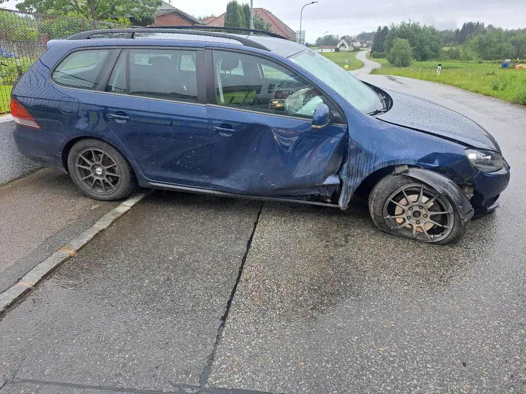 Auf Höhe des Busbahnhofs kollidierten 2 Fahrzeuge. Dadurch waren beide Autos nicht mehr fahrtauglich, blockierten die Bundesstraße und mussten mit dem Kranwagen geborgen werden. Während der regnerischen Bergungsarbeiten wurde eine