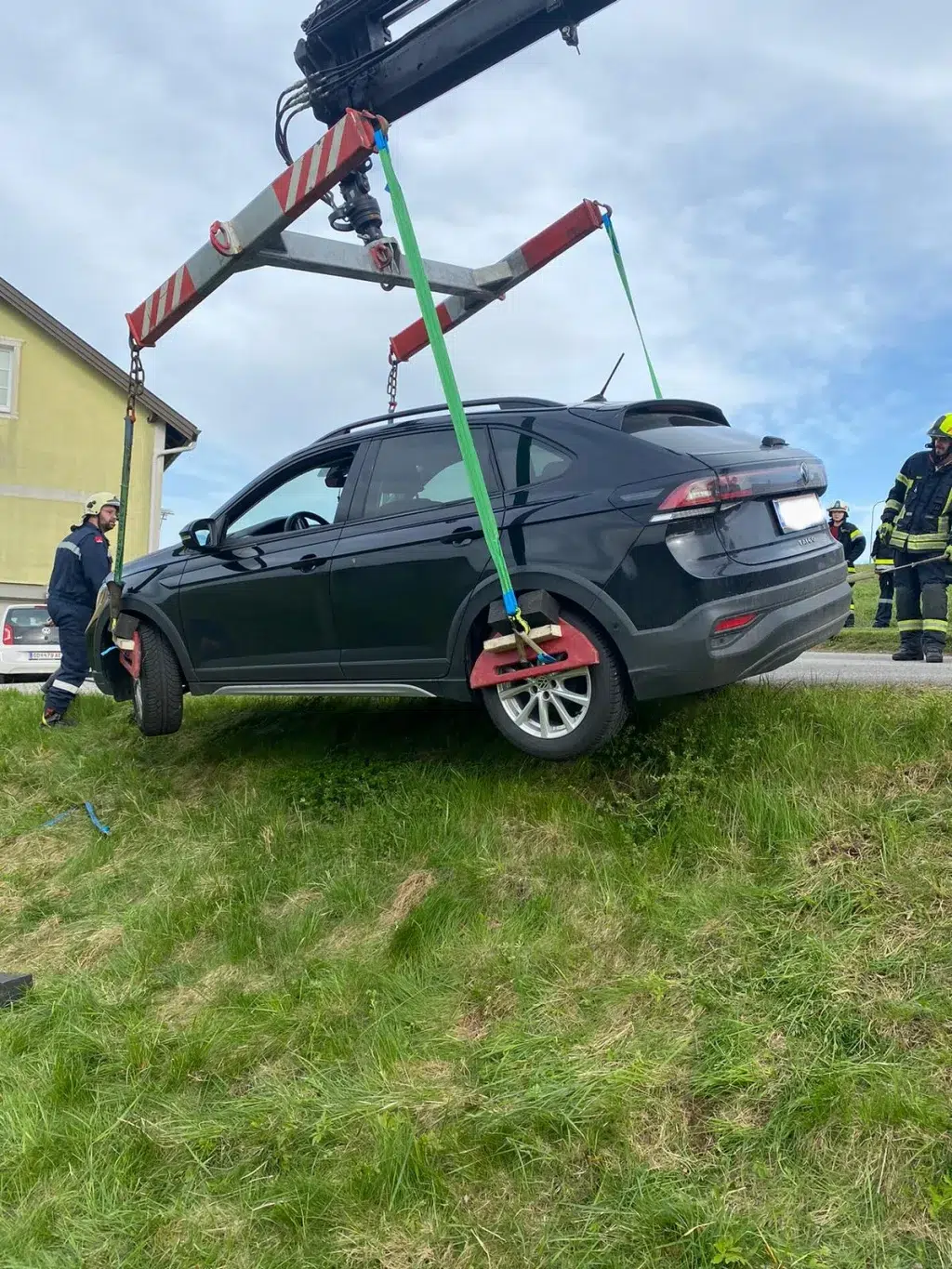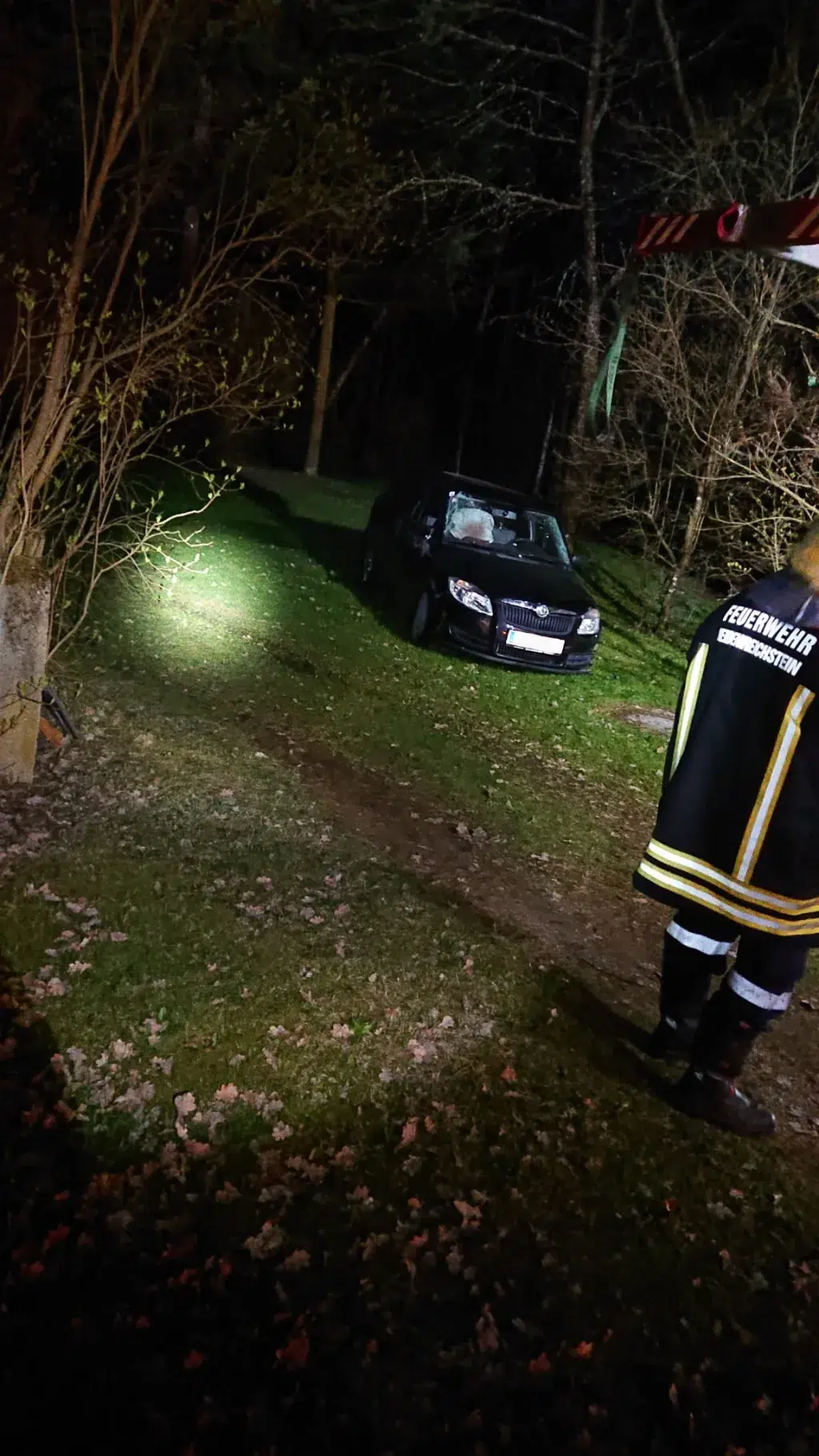 Zur Unterstützung der FF Eberweis wurden wir zu einem Unfall alarmiert.Um ein von der Straße abgekommenes Fahrzeug aus seiner Schräglage zu bergen, wurde unser Kranfahrzeug benötigt.Der verunfallte Wagen wurde geborgen