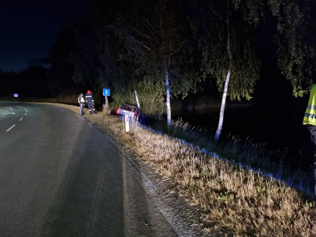 Ein PKW-Lenker kam mit seinem Fahrzeug von der Fahrbahn ab, geriet in den Graben und prallte dort gegen einen Baum. Der Baum verhinderte, dass der PKW in den Neuteich stürzte und dadurch eventuell einen schweren Umweltschaden verursacht hätte.