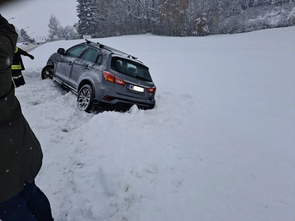 Auf der Schneefahrbahn verlor ein Lenker die Herrschaft über seinen PKW und stürzte in den Graben. Das Fahrzeug musste mittels Kran geborgen werden. Der PKW wurde von der FF mit dem Kran verbracht und sicher abgestellt.