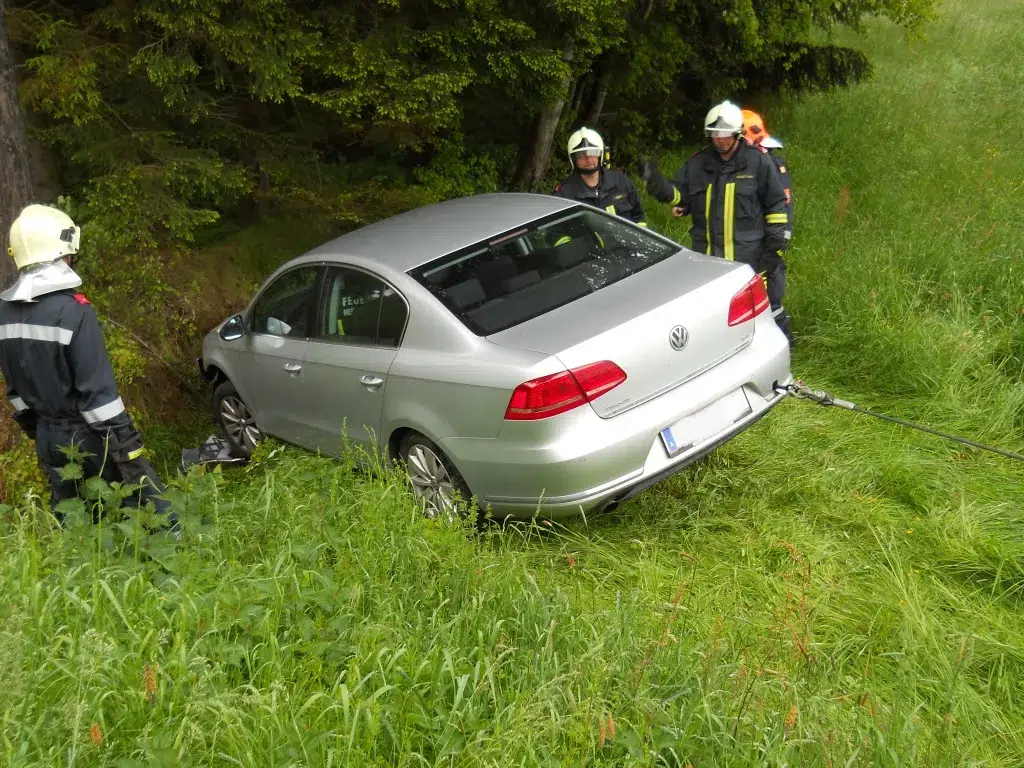 Zwischen Heidenreichstein und Aalfang kam aus ungeklärter Ursache ein PKW-Lenker von der Fahrbahn ab und schlitterte über eine Böschung. Das Fahrzeug kam erst in einem Bachlauf zum stehen. Die FF musste das Auto mittels Seilwinde bergen und stellte den PKW anschließend sicher ab, wo er von der zuständigen Werkstätte abgeholt wurde.