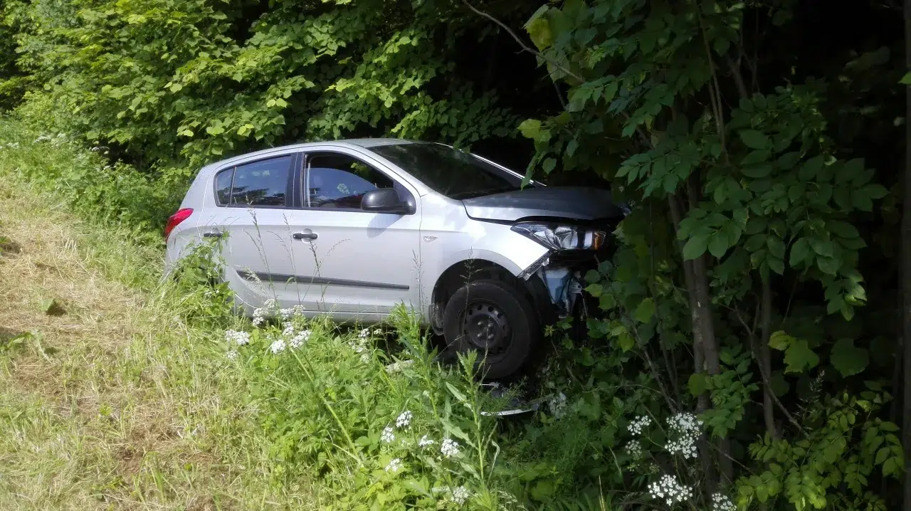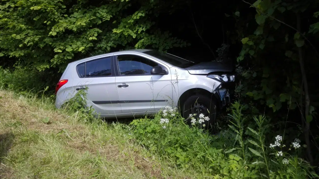 Ein aus Richtung Eisgarn kommender PKW fuhr in einer Rechtskurve geradeaus. Nachdem er einen Straßenpflock und eine Hinweistafel gerammt hatte kam er in den Straßengraben und wurde erst durch einen sich dort befindlichen Stein gestoppt.