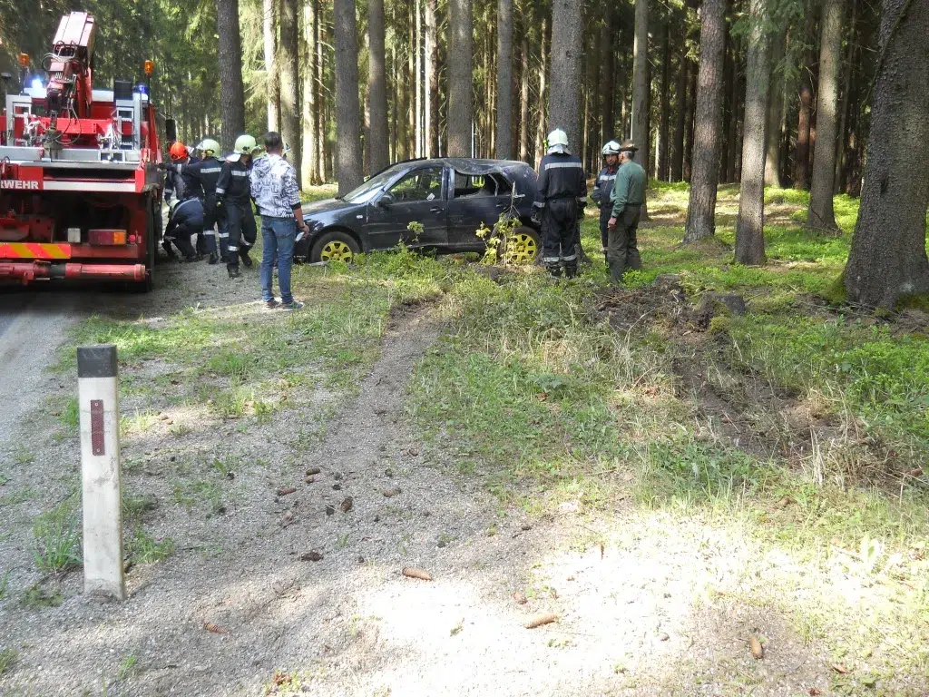 Ein von der Fahrbahn abgekommener PKW musste mittels Kran geborgen werden und anschließend wurde er verbracht und sichergestellt.