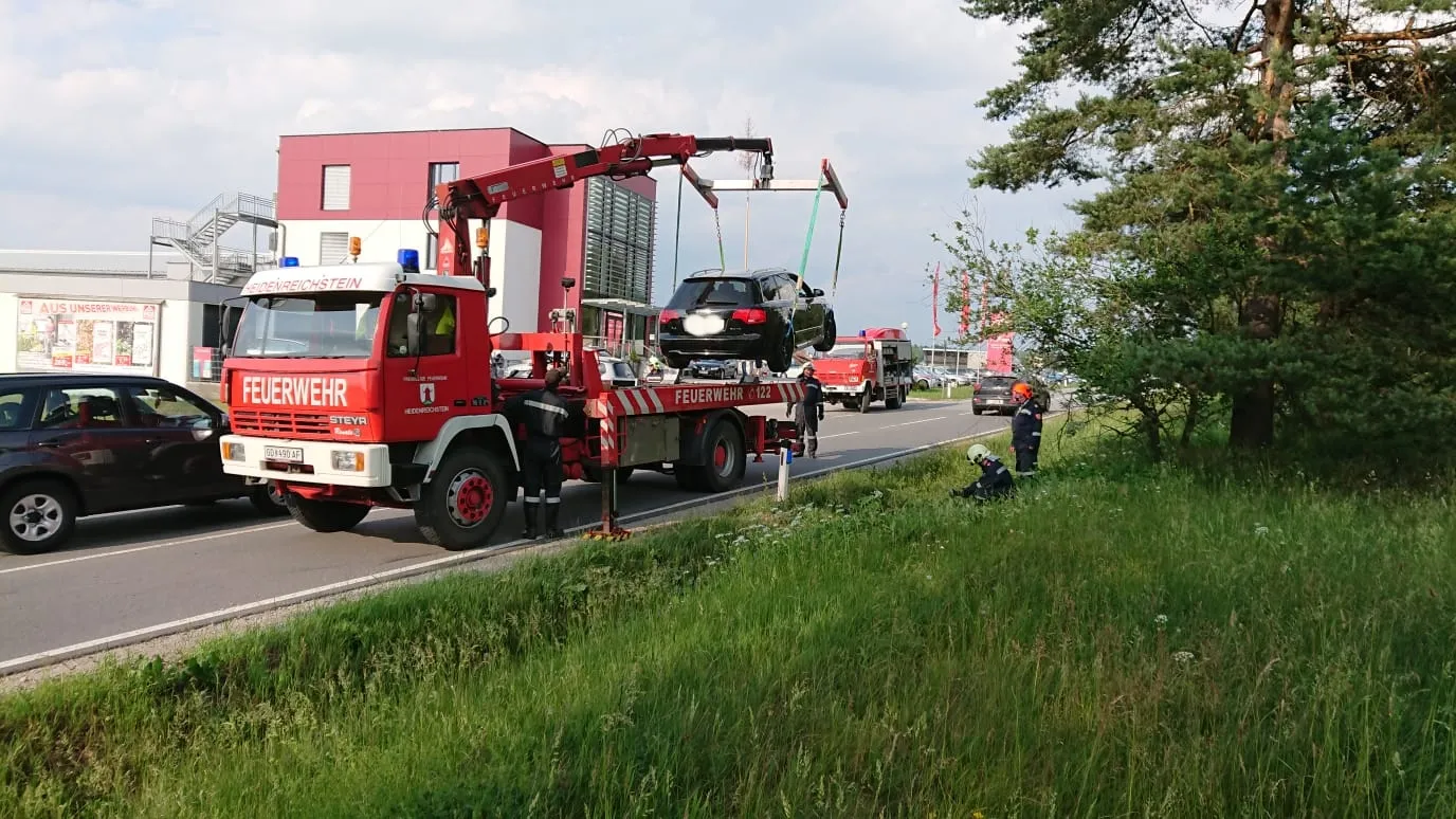 In Folge eines Auffahrunfalls wurde 1 PKW in den Graben geschleudert und musste von der FF Heidenreichstein mittels Kranwagen geborgen und verbracht werden.
