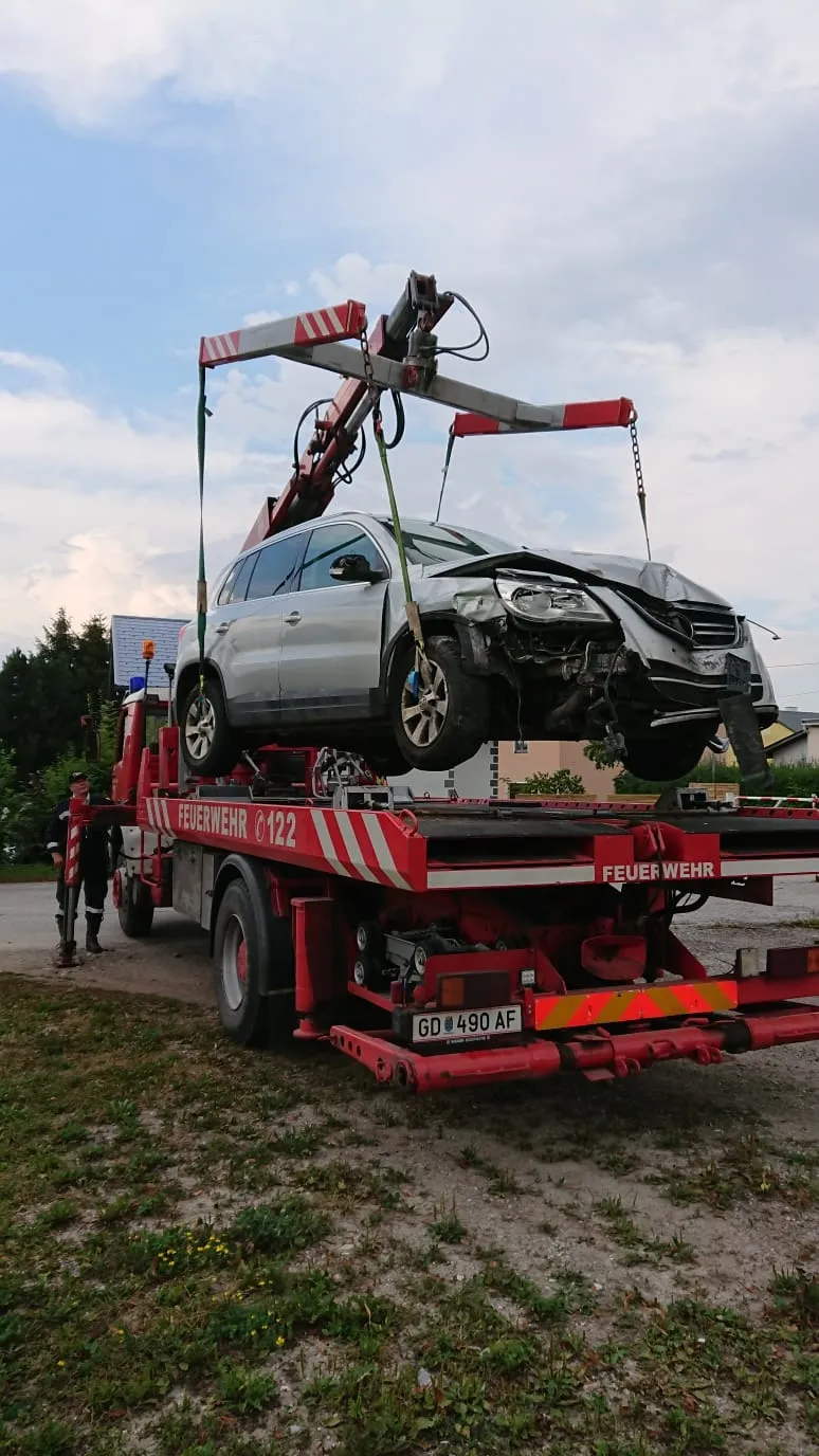 Während der Aufräumarbeiten nach dem Feuerwehrheurigen mussten 2 Mann mit dem Kranwagen ausrücken um in Altmanns einen verunfallten PKW zu bergen.