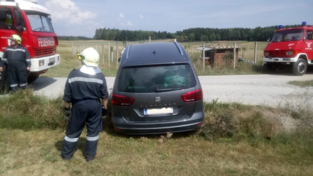 Ein PKW, der bei einem Wendemanöver in den Graben rutschte, musste mittels Kran geborgen werden.
