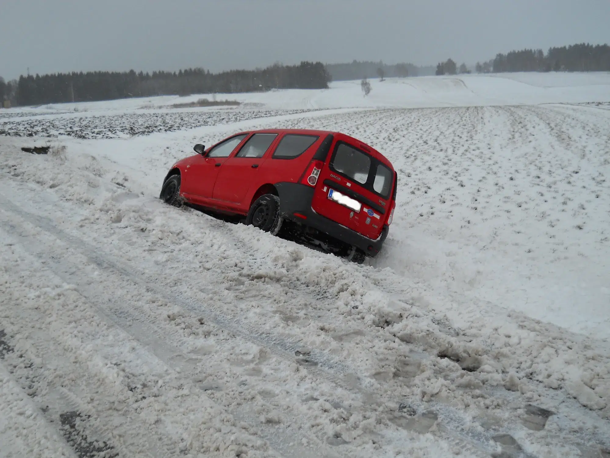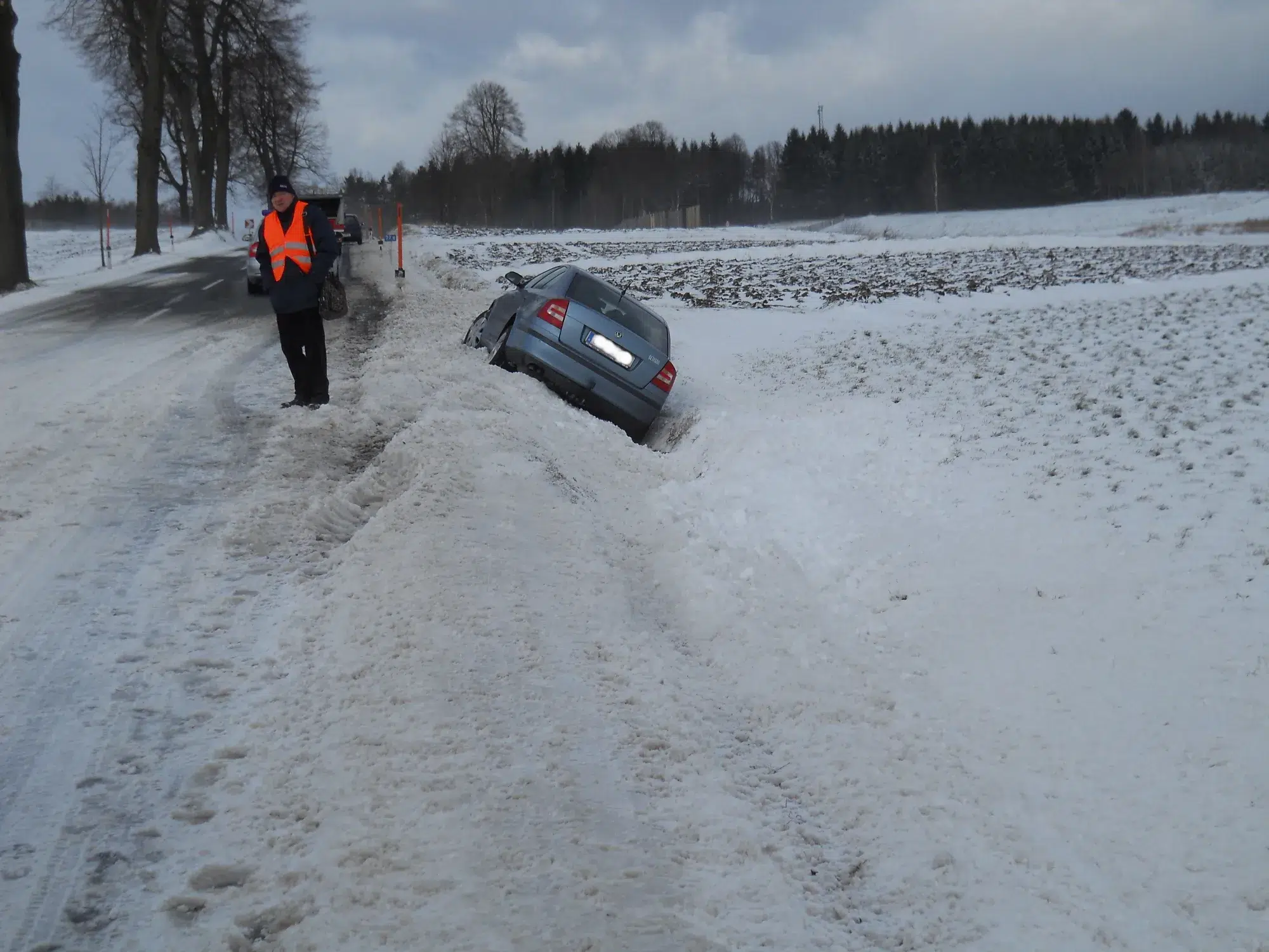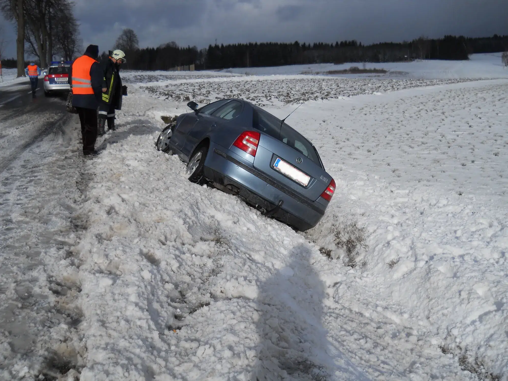 Bergung eines PKW der vermutlich in eine Schneezunge  und in der Folge in den Straßengraben geriet.