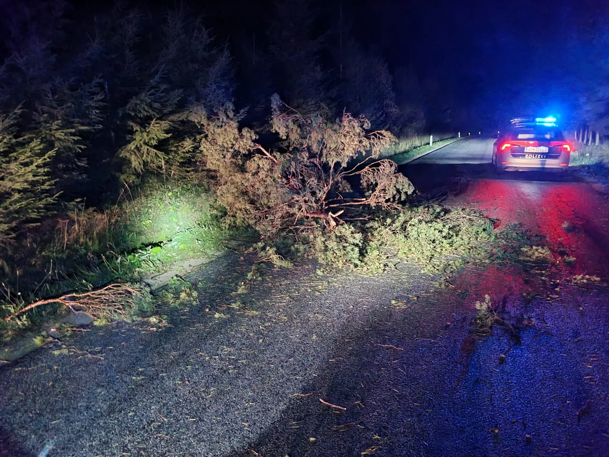 Auf der Straße zwischen Dietweis und Eggern blockierte ein umgestürzter Baum die Fahrbahn.