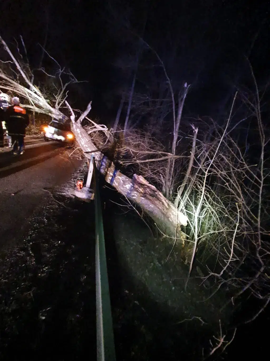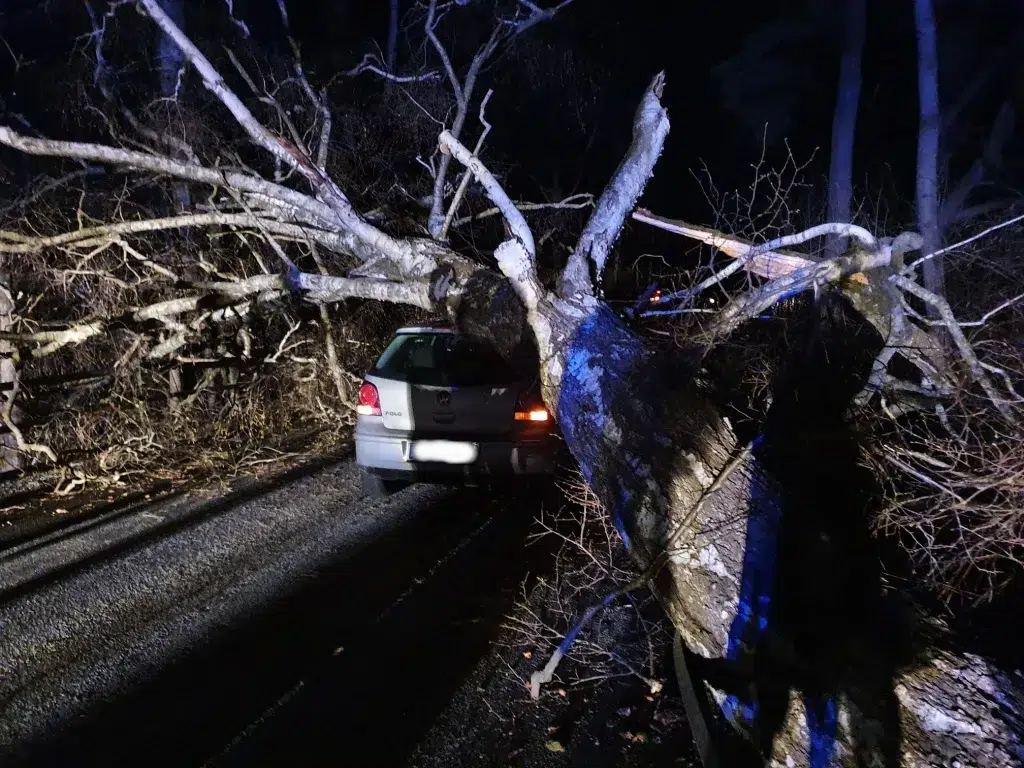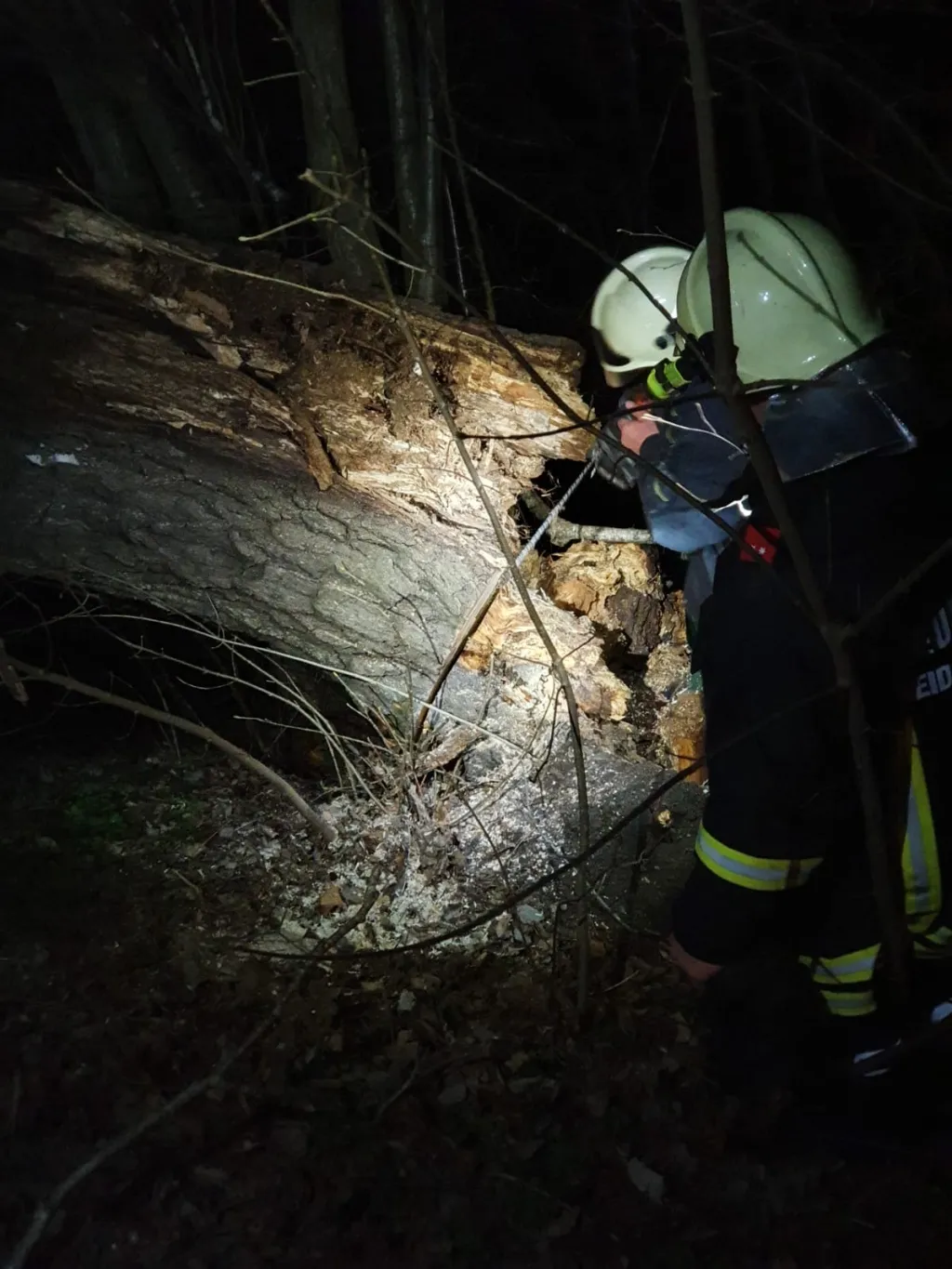 Wir wurden zu einem Einsatz zwischen Haslau und Gutenbrunn alarmiert. Das Einsatzbild lautete „Baum über Straße“. Beim Eintreffen am Einsatzort stellte sich jedoch heraus, dass der Baum nicht nur über die Straße, sondern auch auf einem Auto lag.