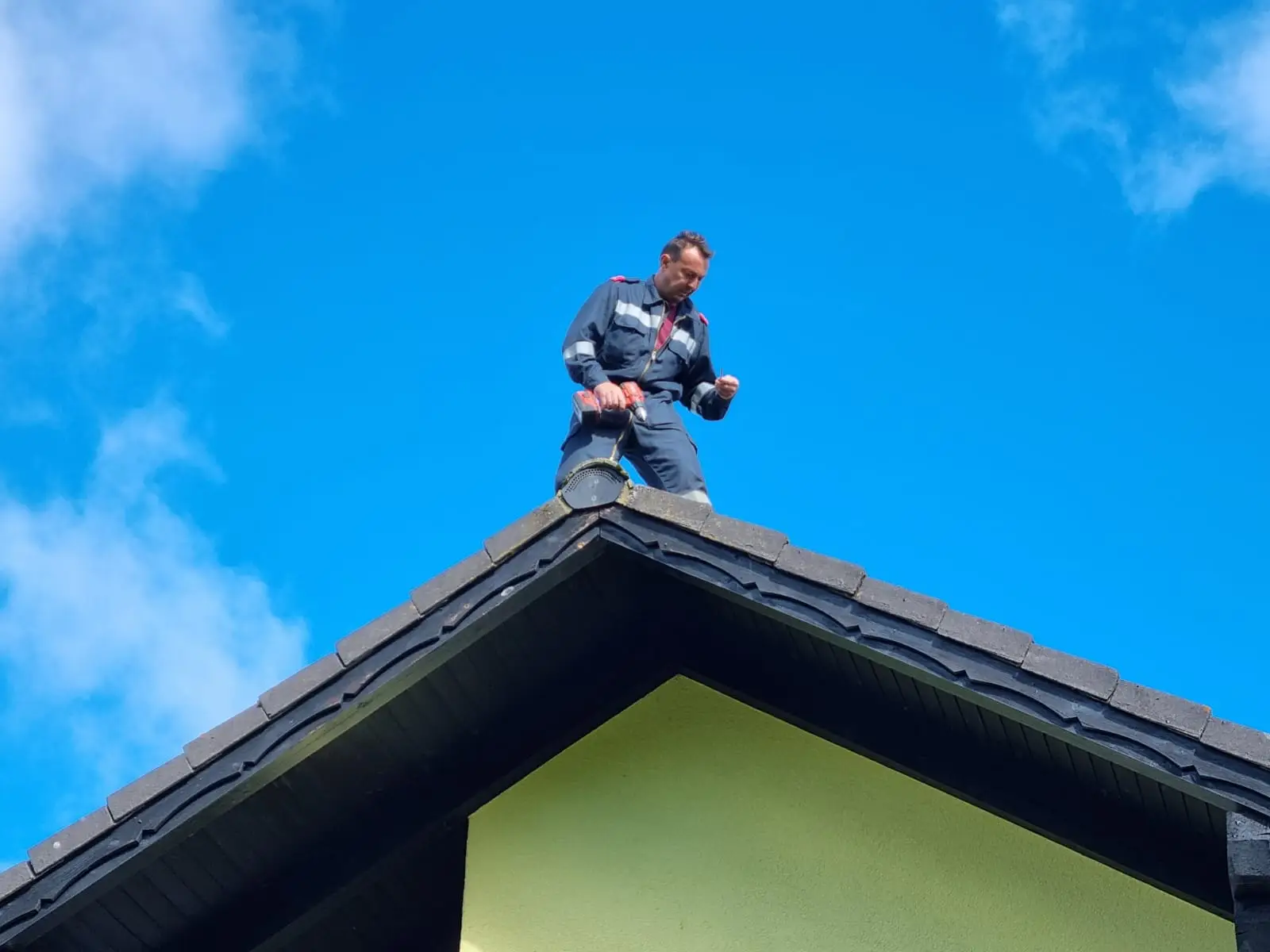Als Folge eines vorangegangenen Sturms wurden auf einem Haus 2 Firstziegel ausgehängt. Dank eines Kameraden, der das auch beruflich Ausübt, konnte der Schaden rasch behoben werden. In der Folge konnte er den Besitzern auch mitteilen, dass eine Sanierung des Daches dringend erforderlich ist, da auch andere Ziegel bei einem weiteren Sturm abstürzen könnten.