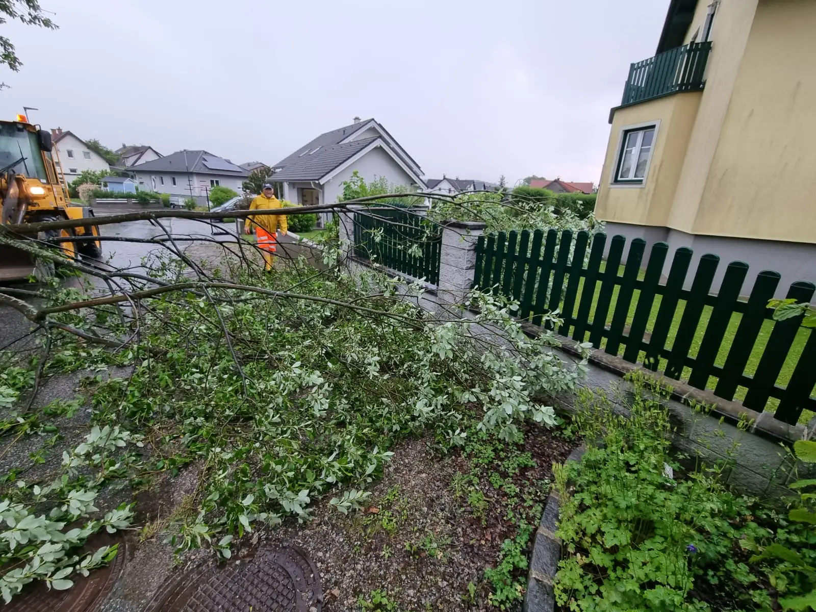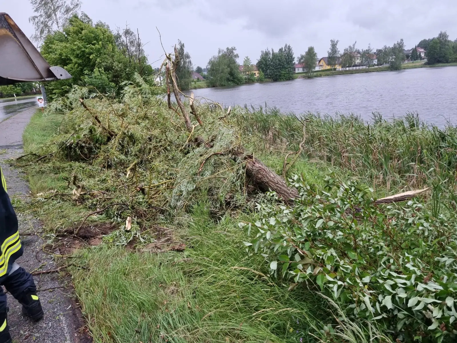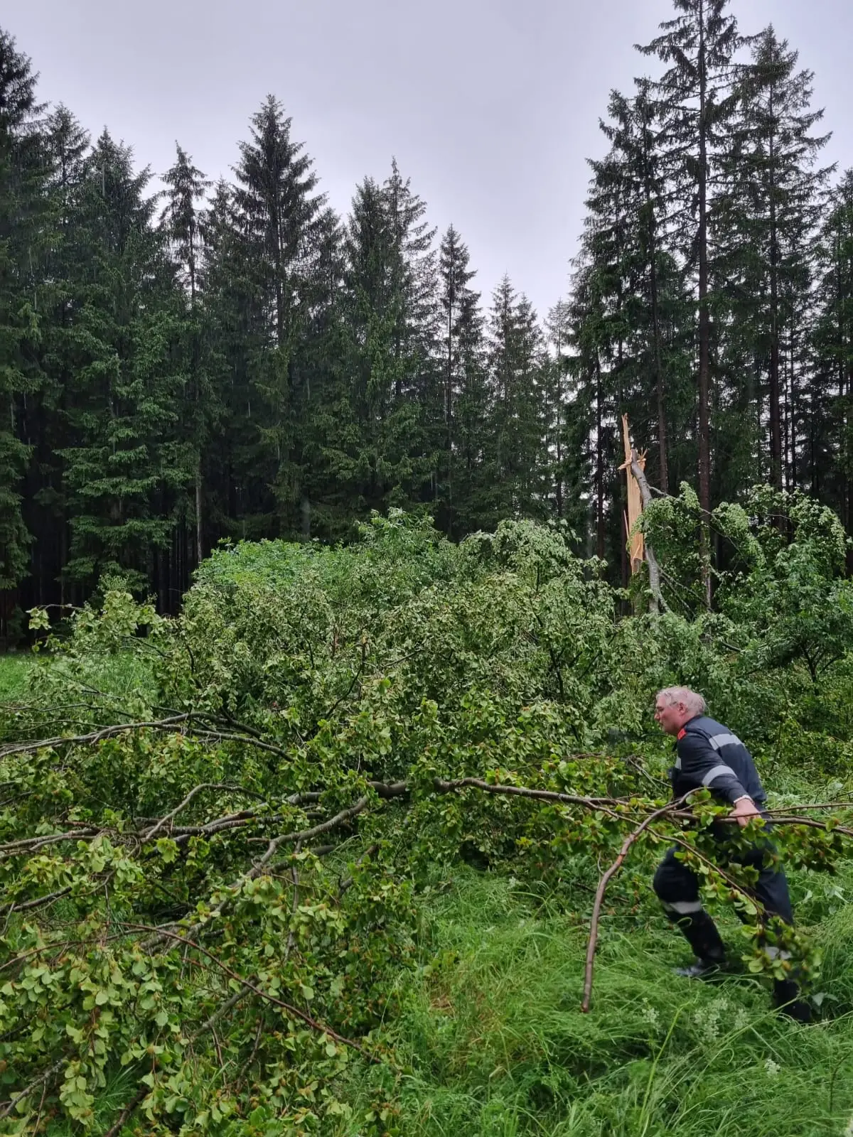 Zuerst wurden wir zu einem Einsatz in der Kautzenerstr. und beim Kindergarten alarmiert. Dort war bereits ein Baum umgestürzt bzw. drohte zu stürzen. Es kamen jedoch laufend neue Einsatzmeldungen herein, so dass am Ende insgesamt 6 Bäume von Straßen und Gartenzäunen zu entfernen waren.