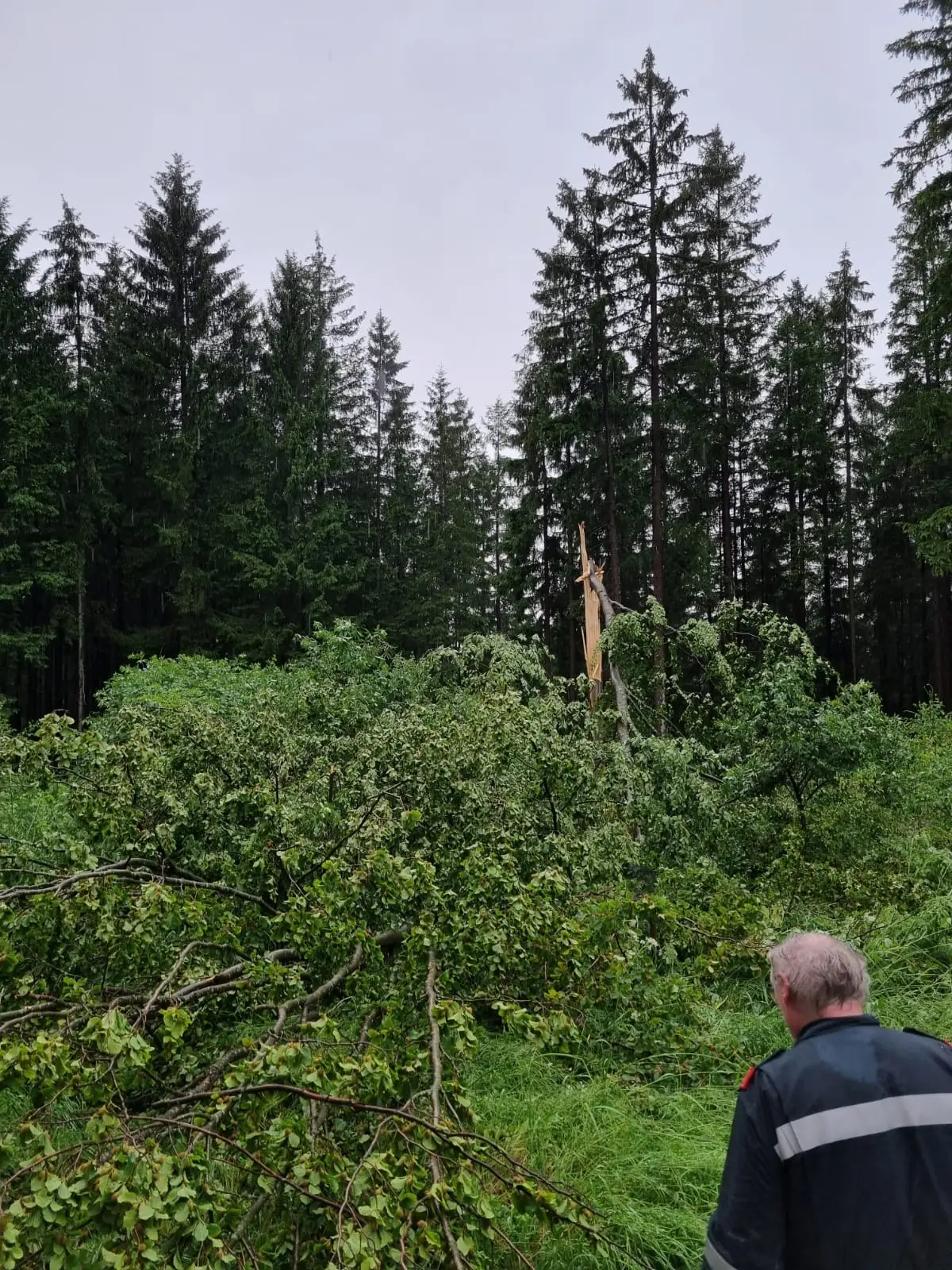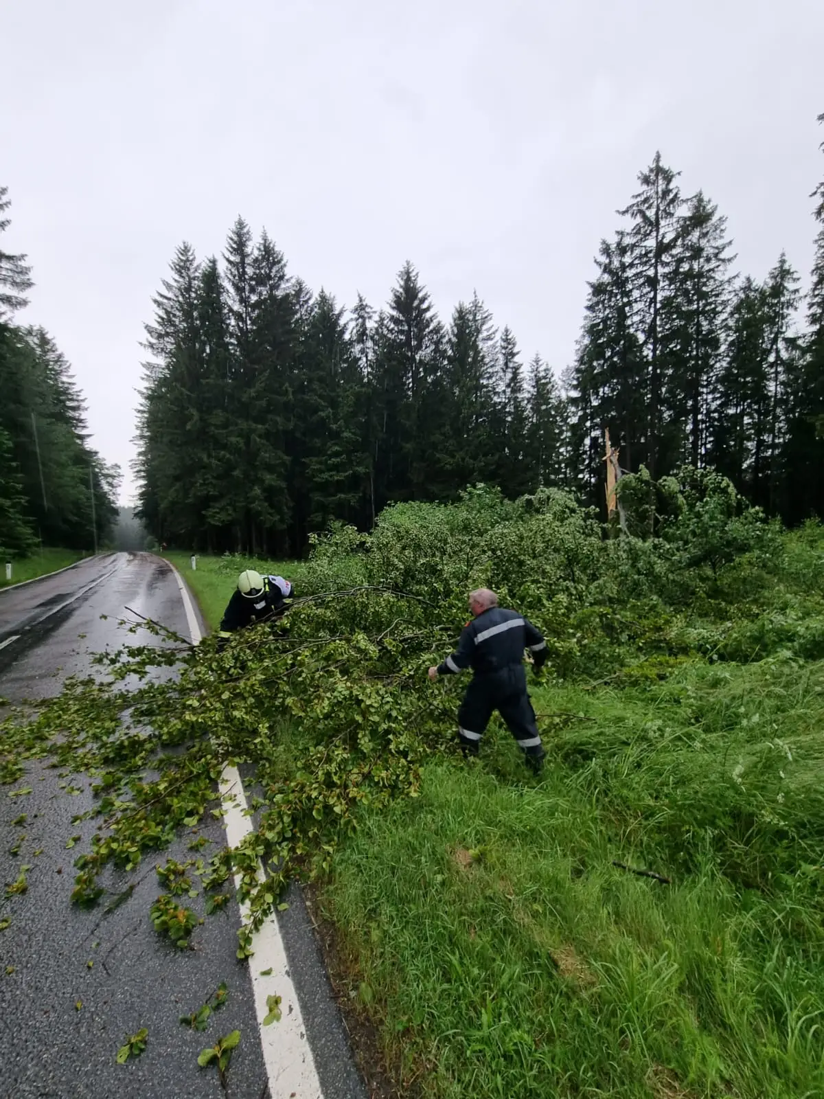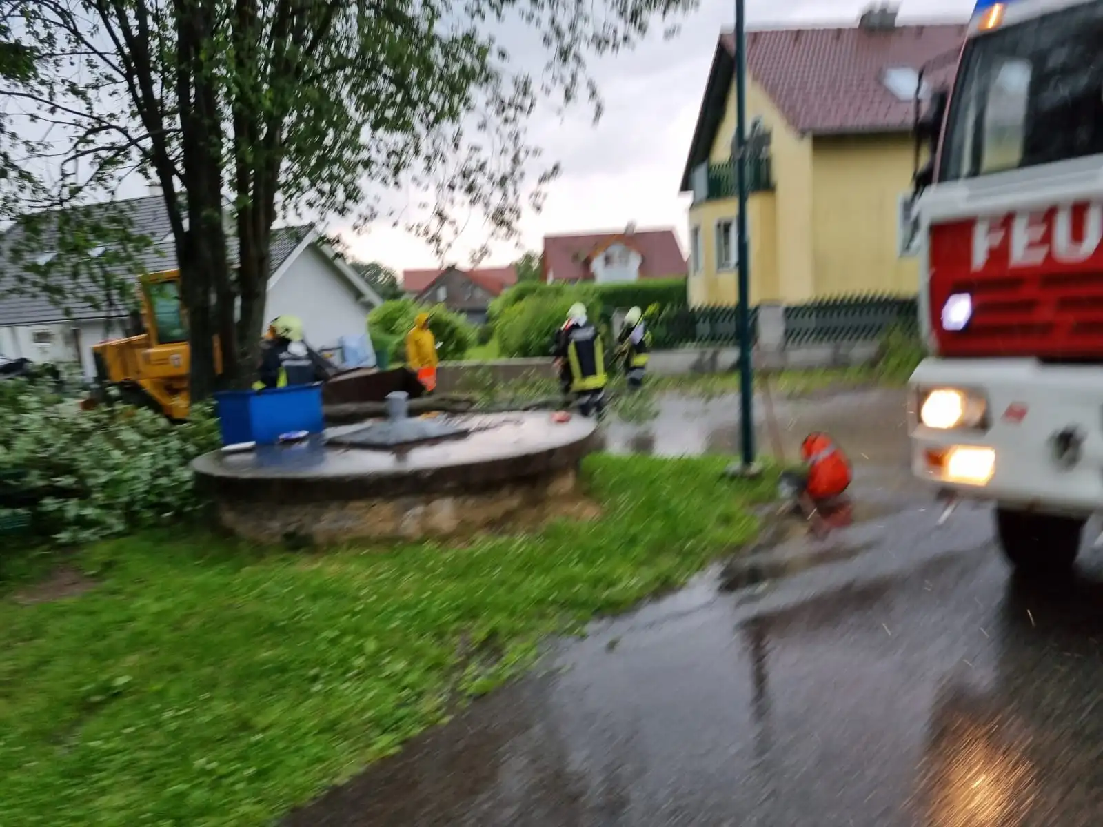 Zuerst wurden wir zu einem Einsatz in der Kautzenerstr. und beim Kindergarten alarmiert. Dort war bereits ein Baum umgestürzt bzw. drohte zu stürzen. Es kamen jedoch laufend neue Einsatzmeldungen herein, so dass am Ende insgesamt 6 Bäume von Straßen und Gartenzäunen zu entfernen waren.