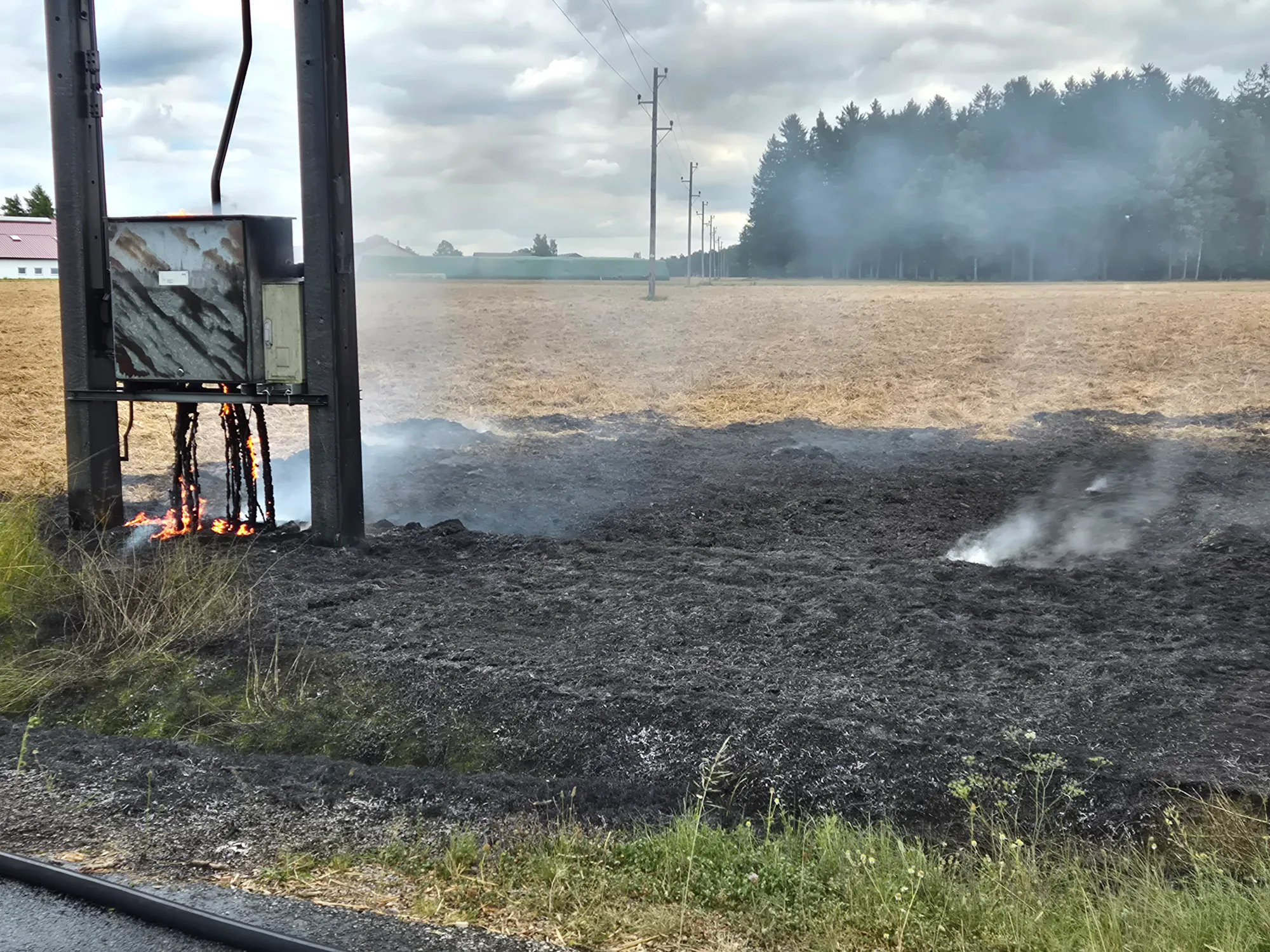 Bei unserem Eintreffen hatte jedoch die FF Eggern bereits den Flurbrand gelöscht und den Trafobrand unter Kontrolle gehalten. Aus Sicherheitsgründen wurde bis zum Eintreffen eines EVN Mitarbeiters auf weitere Löscharbeiten verzichtet. Somit war unser Eingreifen nicht erforderlich und wir rückten wieder in die Einsatzzentrale ein. Auch die Polizei war vor Ort.