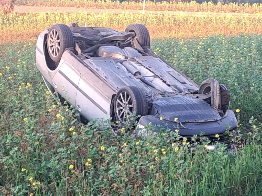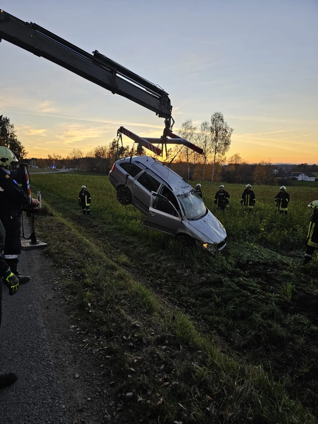 Bei unserem Eintreffen hatte bereits ein Ersthelfer die Person unverletzt aus dem Auto befreit.