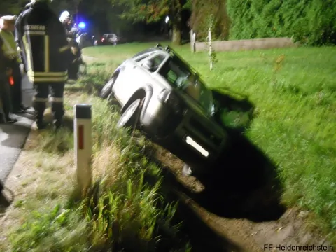 Aus bisher unbekannter Ursache kam ein Lenker mit seinem Fahrzeug von der Eberweiser Straße ab und landete im Straßengraben. Da das Auto so Unglücklich zum Stillstand kam, dass sich der Fahrer nicht selbst aus dem Auto befreien konnte, musste er von der FF Heidenreichstein aus dem Fahrzeug gerettet werden.