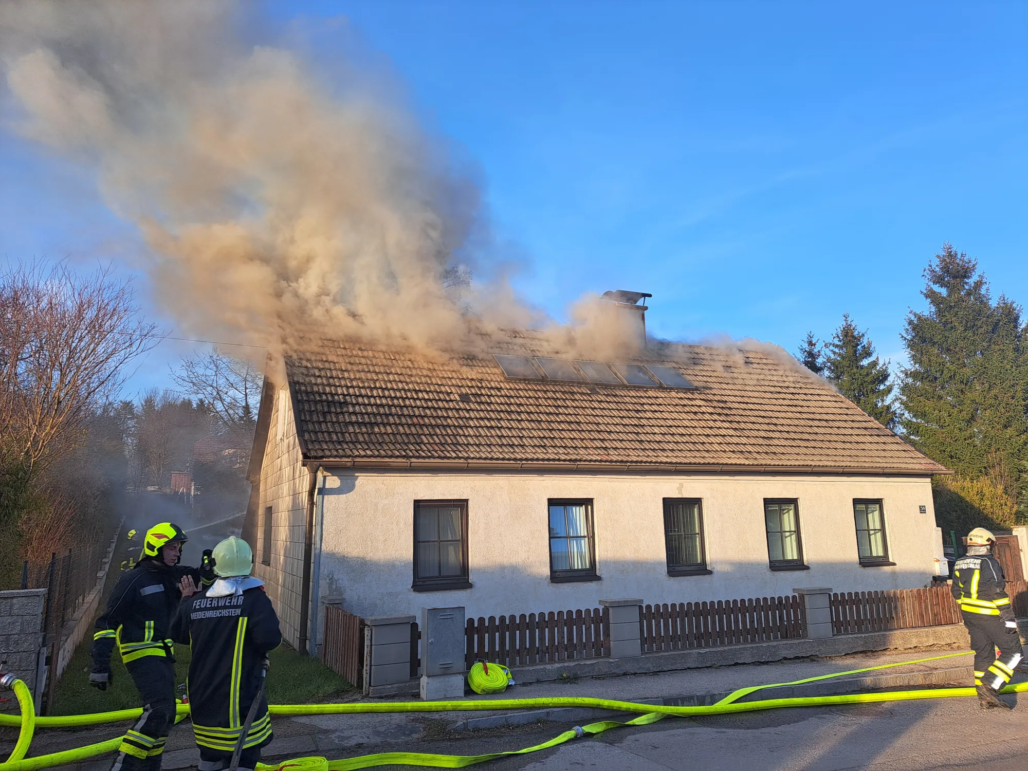 Alarmiert wurden wir zur Unterstützung der FF Pfaffenschlag bei einem Brand in einem Wohnhaus mitten im Ort. Bei unserem Eintreffen stand das Haus bereits in Vollbrand. Die eintreffenden Wehren hatten das Feuer rasch unter Kontrolle.