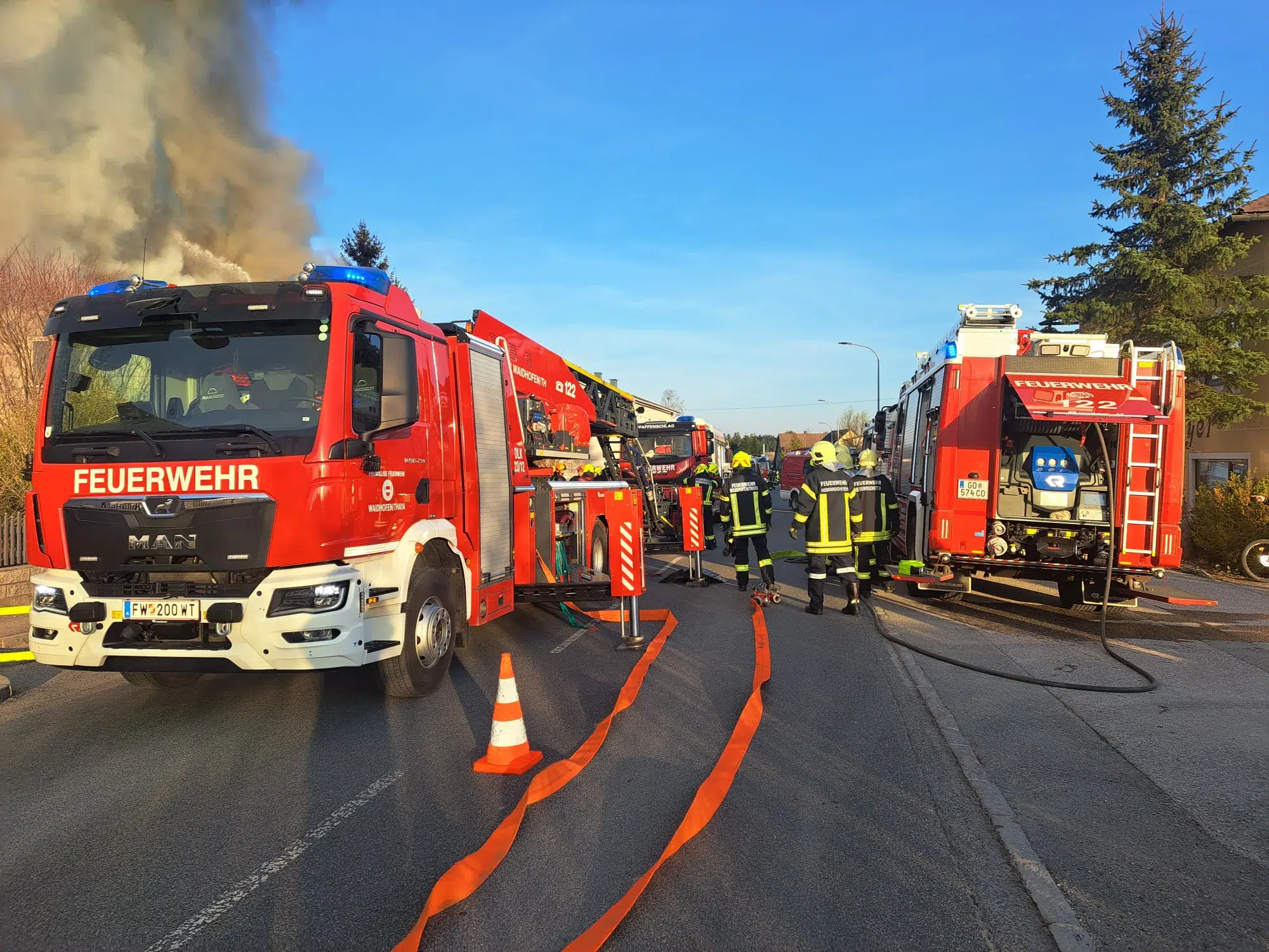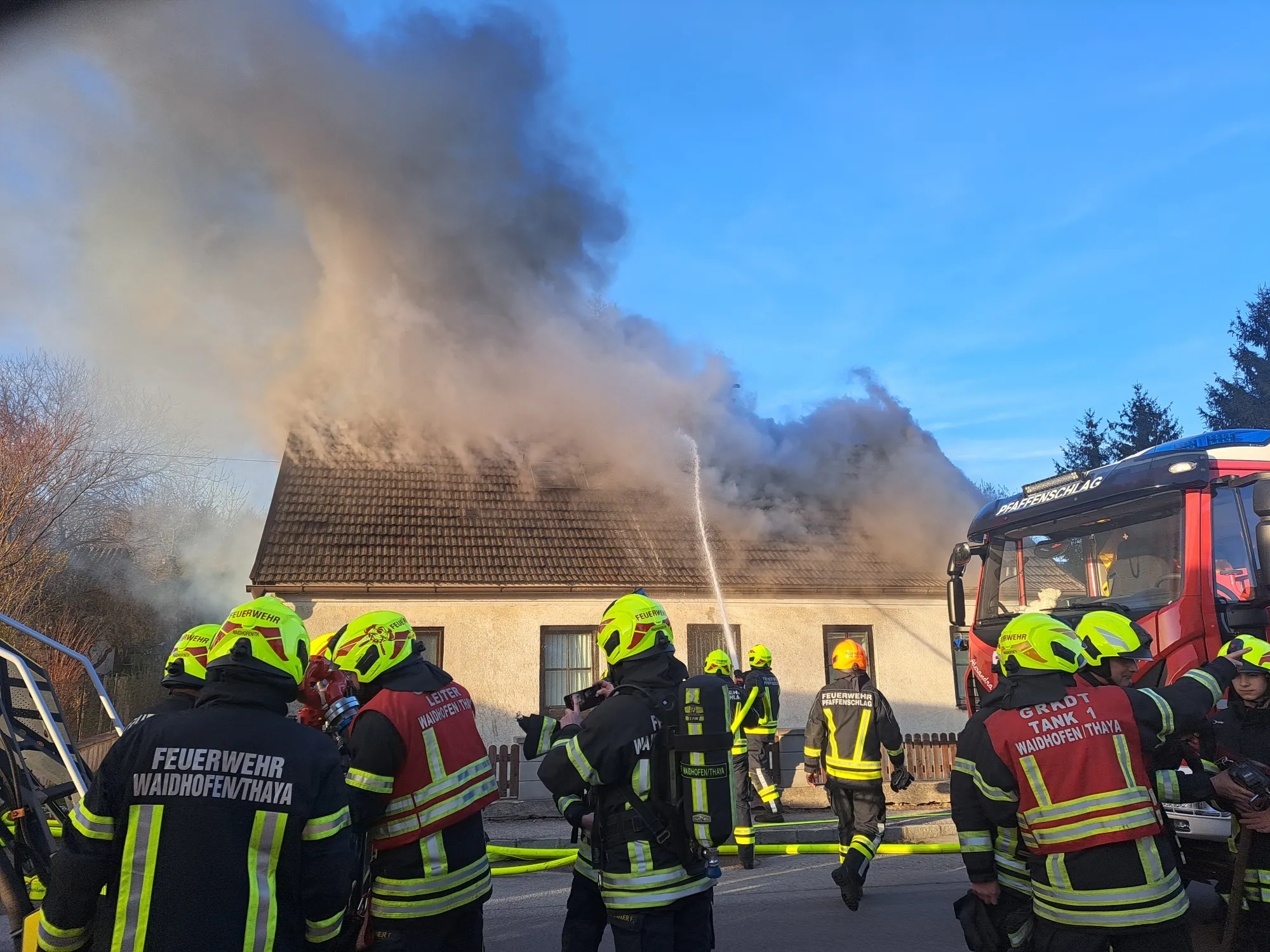 Neben der FF Pfaffenschlag und den Wehren der Katastralgemeinden standen auch die Feuerwehren Heidenreichstein und Waidhofen/Thaya, das Rote Kreuz und die Polizei im Einsatz.