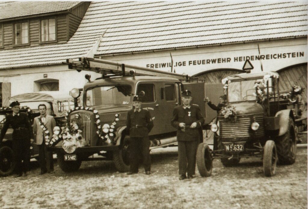 Die Freiwillige Feuerwehr Heidenreichstein wurde im Jahr 1878 gegründet. Damals engagierten sich 47 Helfer aus der Umgebung ehrenamtlich. Die Ausrüstung war für heutige Maßstäbe sehr bescheiden: 40 Löscheimer aus Stroh und Leinen, eine Handpumpe mit einer Leistung von 50 Litern pro Minute sowie einige Leitern. Gelagert wurde alles in einem einfachen Schuppen – genau dort, wo heute die Volksschule steht.